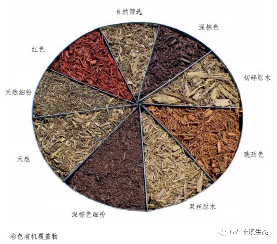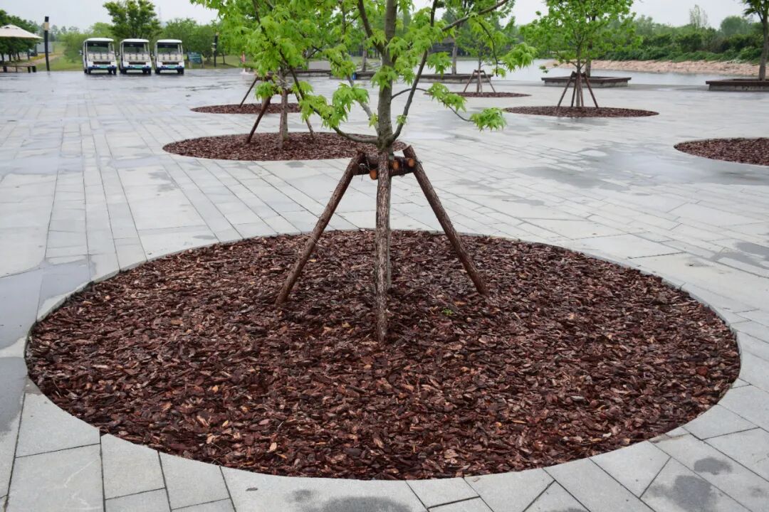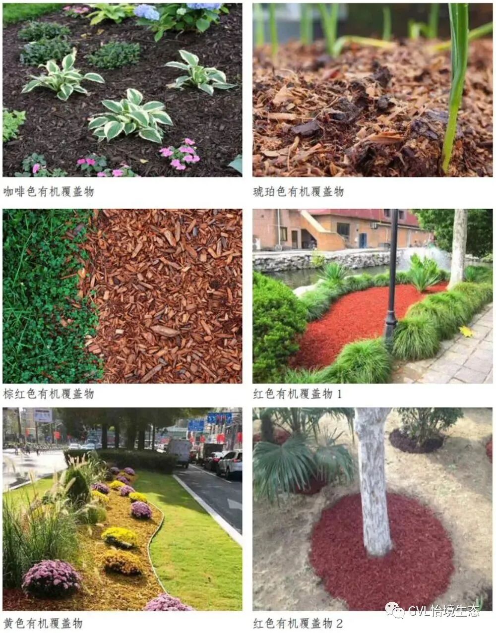 有机覆盖物颜色丰富多彩,广泛应用在行道树栽植、公园景区、厂区园区等景观绿化项目中,特别是一些立地条件很差的暂时不宜绿化的贫瘠土壤的覆盖装饰城市公共绿地、园径等项目,都可以通过各种颜色搭配铺设,既生态环保,又有良好的景观效果,也可以在海绵设施中起到防止水土流失,为植物和土壤保持水分等功能。