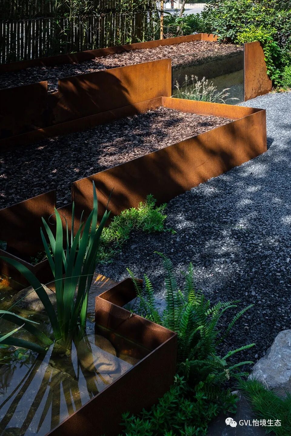 ▲作为填充装饰肌理使用,类似龙湖的白卵石带或者禅意景观中的碎石铺地做法,但作为自然的材料使用其中会显得更加生态