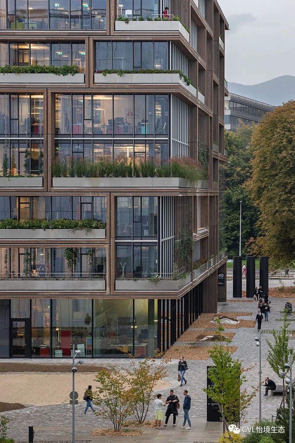 ▲无国界医生组织总部大楼:根据瑞士认证,本项目的立面性能是满足基于“Minergie-P”的极高标准的重要因素。除了作为遮阳板和气候缓冲的空间功能外,还提供了带有外部纺织遮阳板的三层玻璃。光伏板安装在屋顶上,项目连接到GeniLac生态供暖和制冷网络。该基础设施使用日内瓦湖的水和100%的可再生电力。因此,该建筑完全由可再生能源供电。设计使用的银杉等当地木材有助于通过储存二氧化碳来降低温室效应。