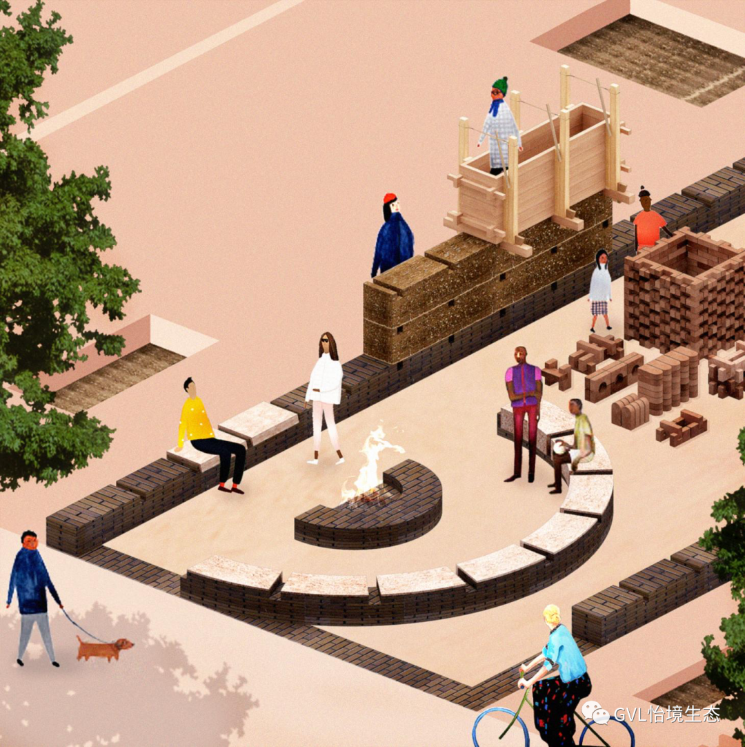 ▲Studio Ossidiana 的花园桌:采用简单、巧妙设计的模块化积木,并将它们变成可以坐下、玩耍、吃饭或让野生动物生长的地方。