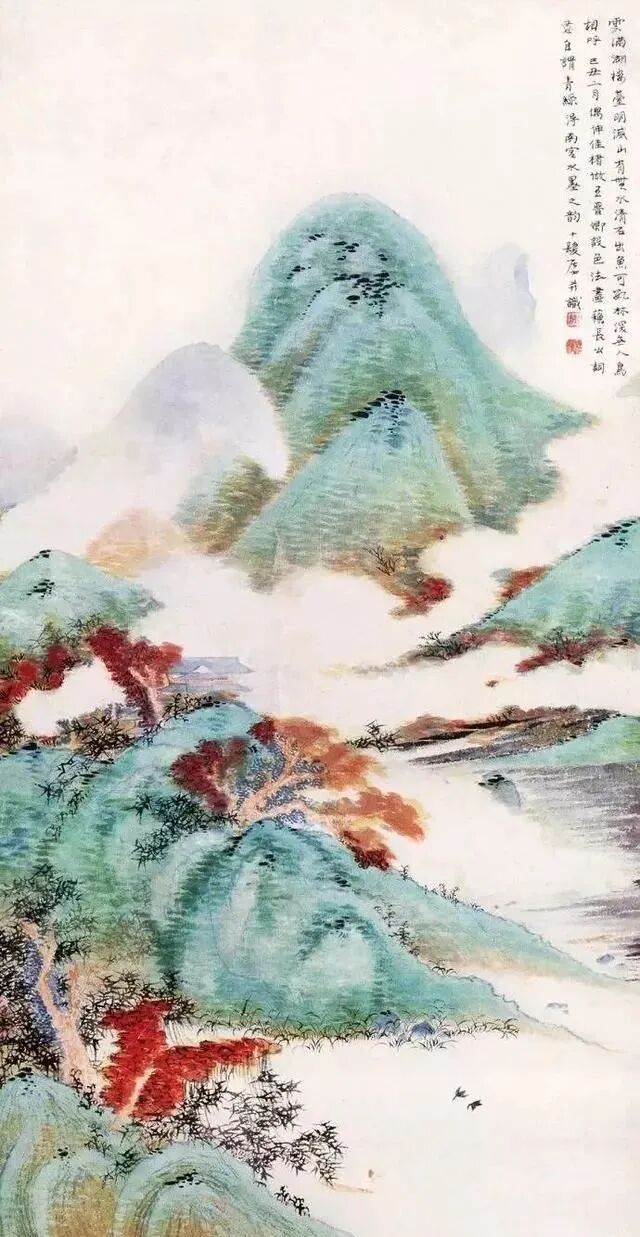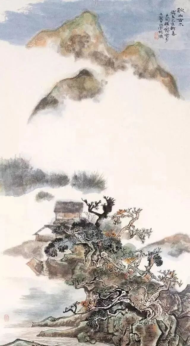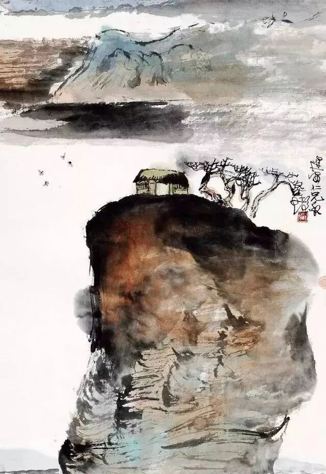 程十发的山水画也极为养眼。虽然他的山水画作品显然不如他的人物画鸟一般备受推崇,但看多了他的山水作品你就能品味出一种独特的味道出来。