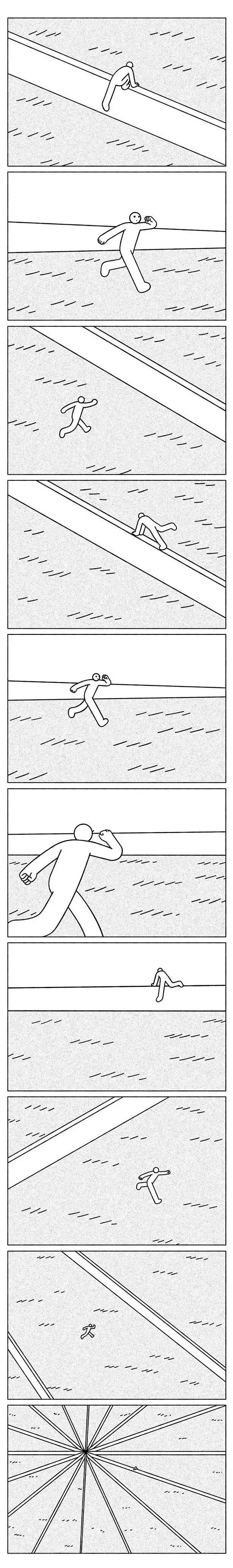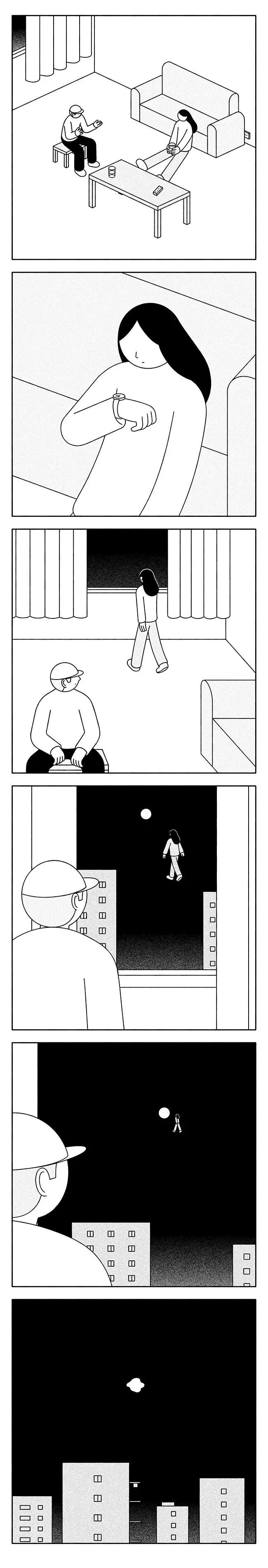 偶然在一个不眠的晚上,看到朋友转发的一幅名为《阳台》的漫画: