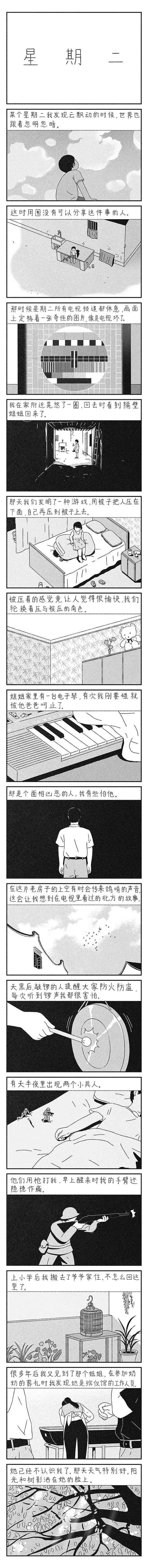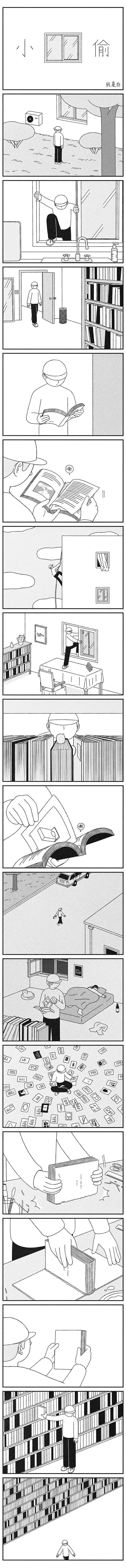 所以有时候,欣赏他的漫画,根本无需文字的介绍。他只是习惯于把一个真实体验过的经历植入到幻想的事件里去,从而产生一个全新的故事。