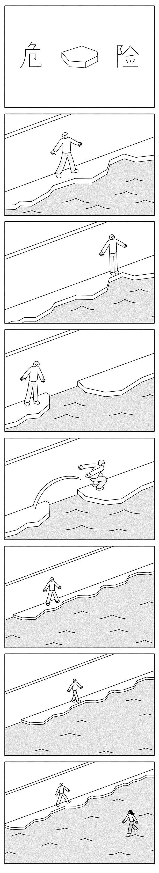 这些评论内容也逐渐成了一片风景,适合大家观看他的漫画时一起欣赏。像这幅名为《墙》的漫画,有网友看完之后就说,其实小白人在伞里玩得很开心。