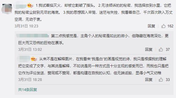 而有时候,为了解析出作品的故事和含义,网友们甚至会互不相让地争论起来。