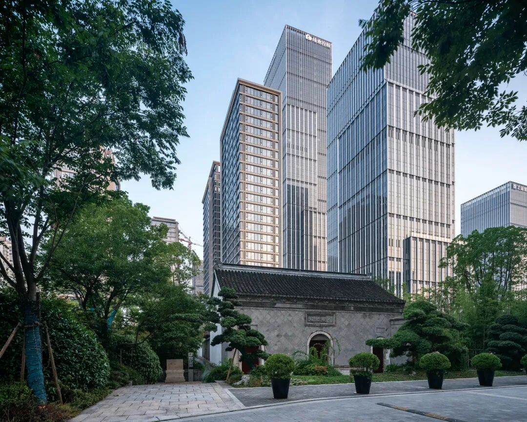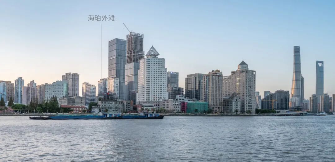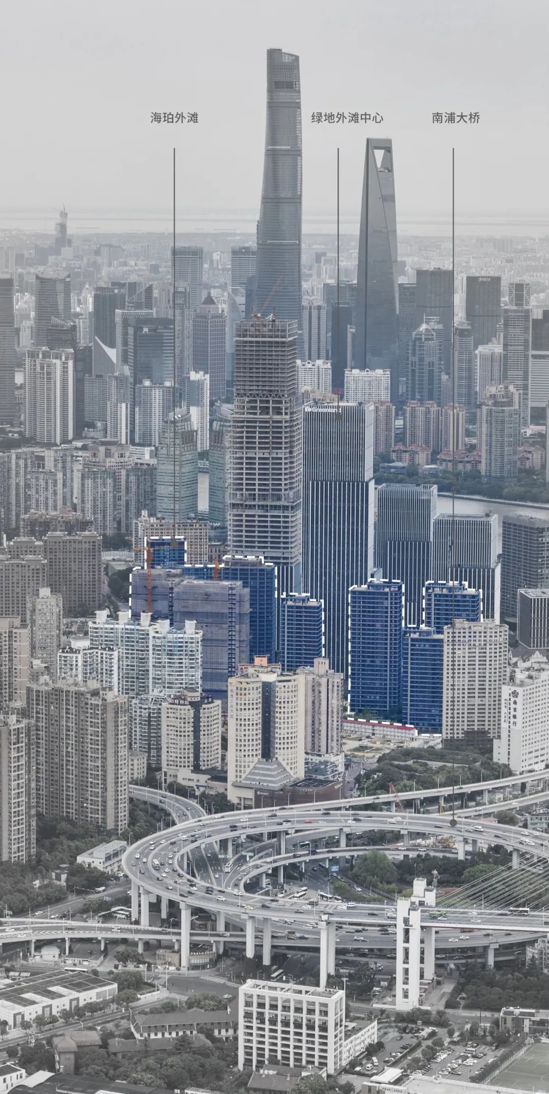 海珀外滩基地位于董家渡核心板块——绿地外滩中心内,毗邻基地有2座文保建筑,距今150多年的上海天主教堂和距今300多年的商船会馆,周围零星散落着中式庭院和戏台等老建筑。基地北侧有代表董家渡高度的3幢5A级超高层写字楼,楼栋最近点直线距离离海珀外滩场地红线不足50米。项目位于新旧交织点,一侧需面向老建筑,一侧需面向现代化高楼,如何共筑城市界面、容纳新老关系是项目的挑战。