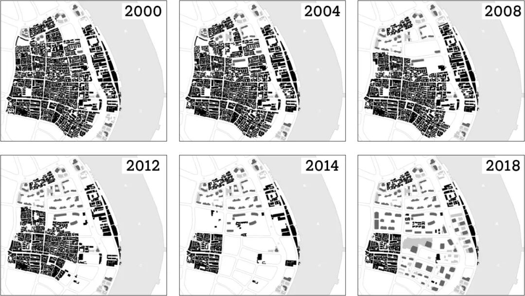 为打造外滩金融聚集延伸带,从2002年开始,董家渡进入了城市界面翻新的时代。goa大象设计以建筑设计者的身份,从发展布局伊始——保持对董家渡的高度关注,并在20年间有幸深度参与了多个地块的城市更新进程。从落成5年的黄浦湾公寓,到一期刚竣工的海珀外滩,再到待建成的董家渡2#3#地块、12#14#地块,大象设计在漫长的时间跨度中持续为董家渡的发展添砖加瓦,也从董家渡的脉络中积累了最为真实的城市更新背景下开发类项目的经验。