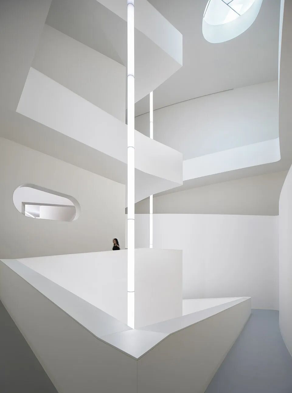 这是一个主要体量近乎完全封闭的建筑,内在空间变化复杂,西扎第一次使用长达22米的垂直灯具,各方面的独特性都让这个项目成为西扎近年作品序列中难以略过的一个。