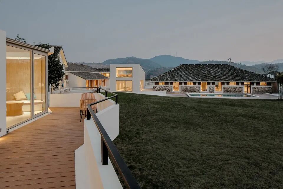 设计师在尊重原有建筑肌理的前提下,重新调整与梳理了空间格局。一方面加强前后场地在视觉上和动线上的连贯性,另一方面使建筑与整个场地及周围山景的融合更密切。
