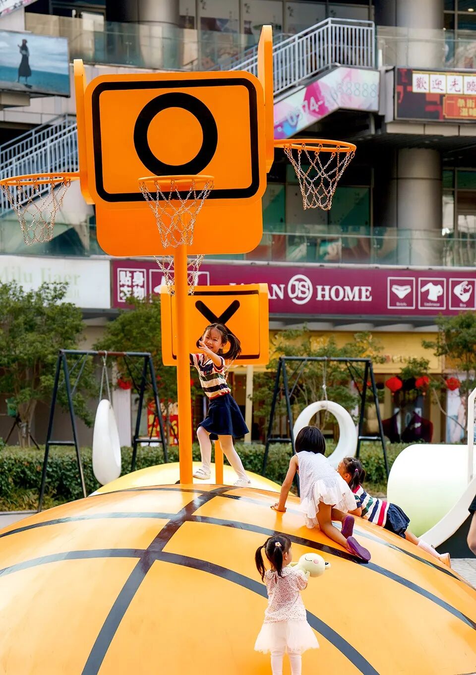 2021 年秋季宁波街头出现了“奥林匹亚巡展”,它是由佰筑研发的 “即插即用” 流动系列装置的一部分。在“快装快用”战略的推动下,打算在中国的几个城市巡回展出,宁波是其首站。它由篮球和网球2个超现实运动场组成,用户不能严格地、正式地进行这些运动,但可以将自己沉浸在超现实主题的游戏环境中。