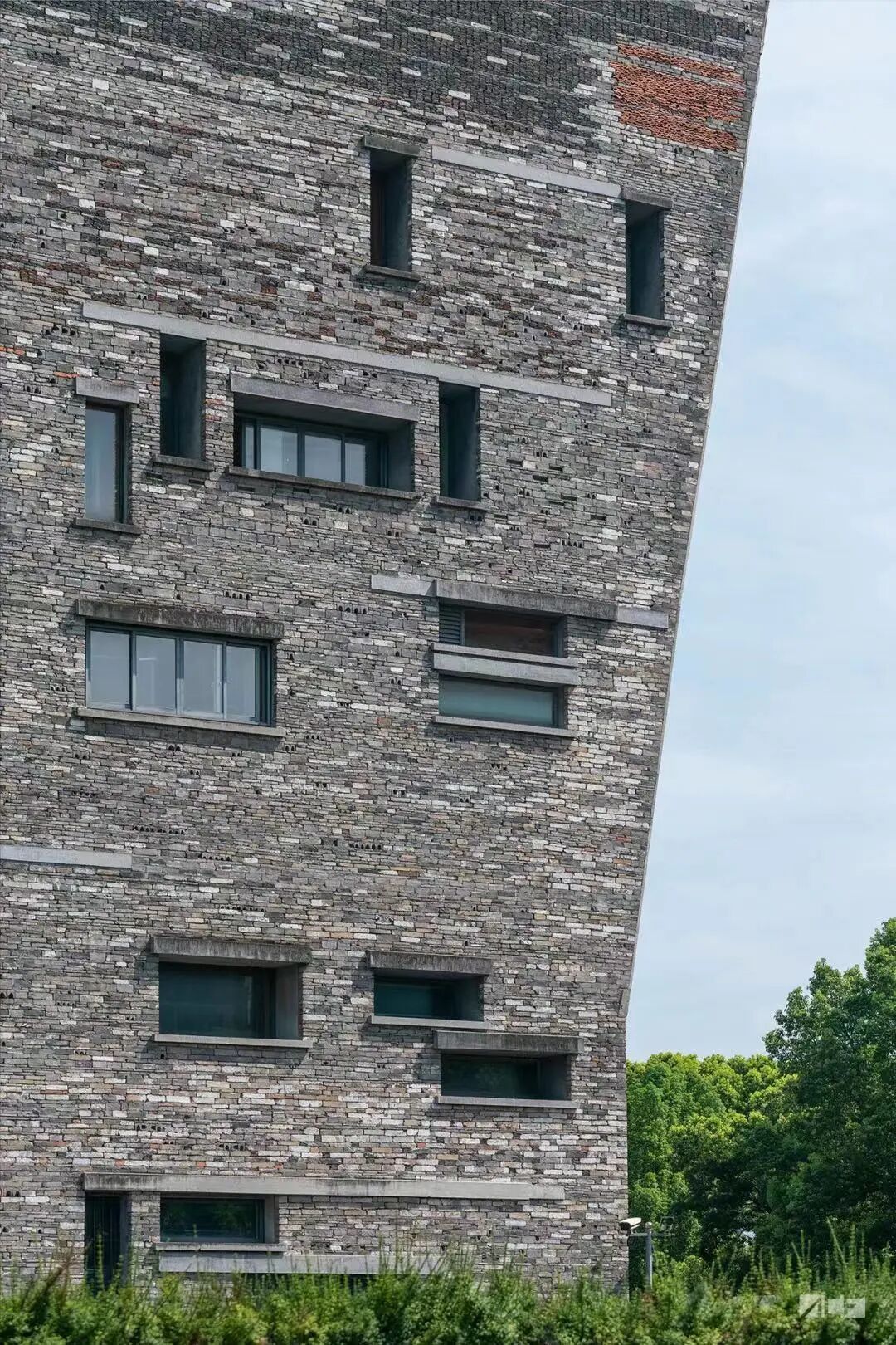 宁波博物馆 是首位中国籍“普利兹克建筑奖”得主王澍的代表作。建筑的外观被塑造成一座山的片段,内外由竹条模板混凝土和二十种以上回收旧砖瓦混合砌筑的墙体包裹,如一种在人工和天然之间有生命的物,作为山的物性是它唯一要表达的。在建筑开裂的上部,隐藏着一片开阔的平台,通过四个形状不同的裂口,远望着城市和远方的稻田与山脉。