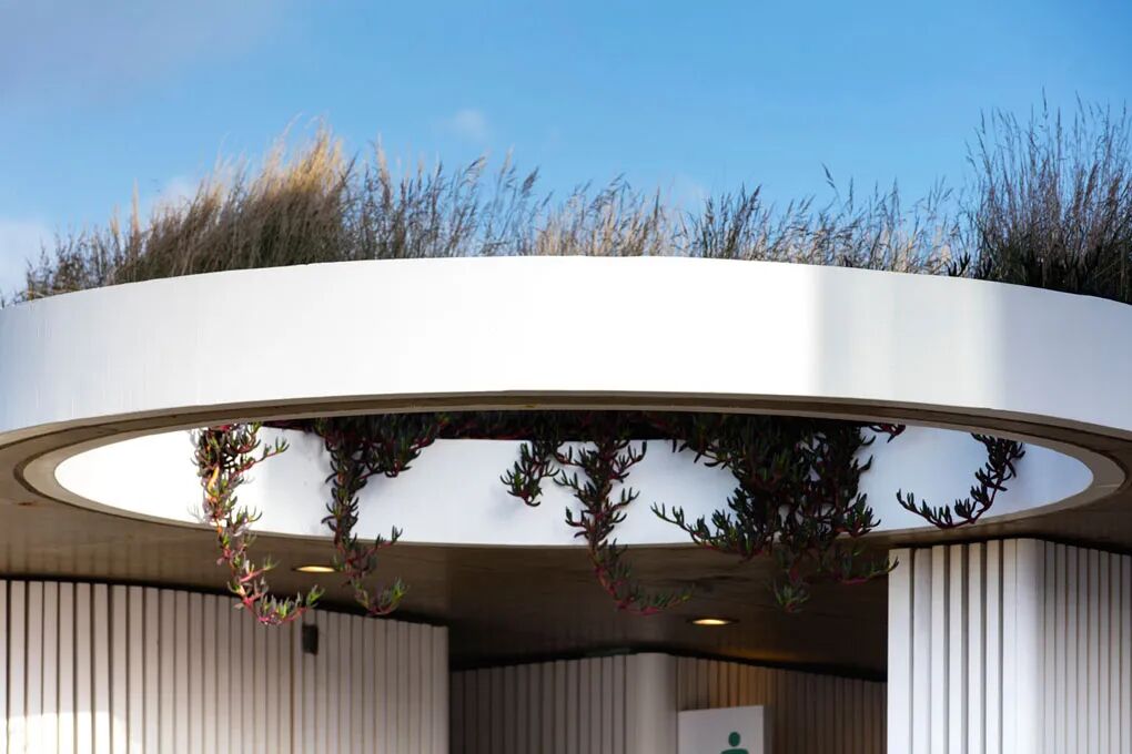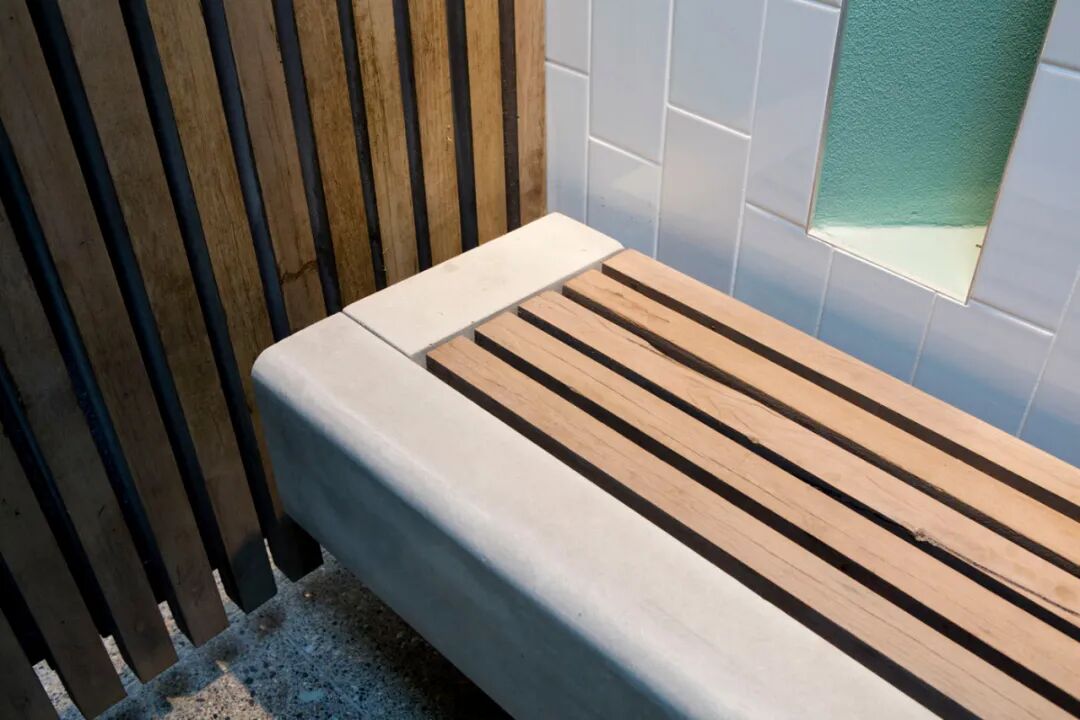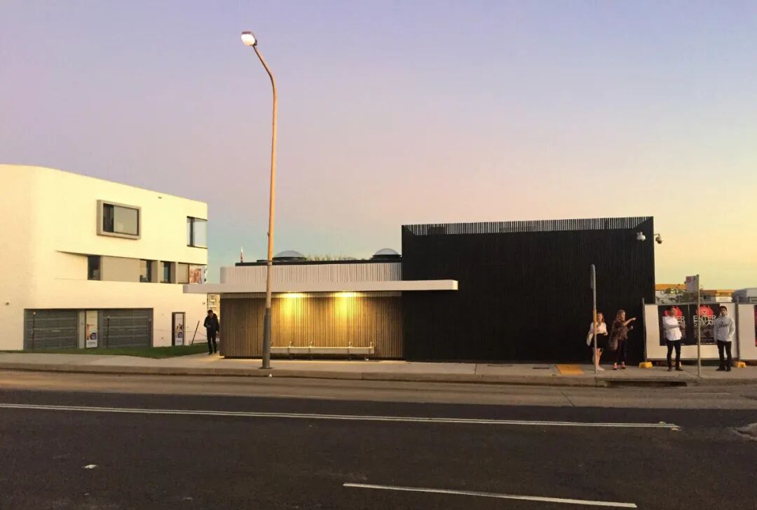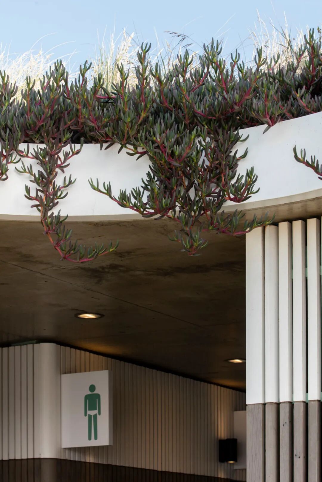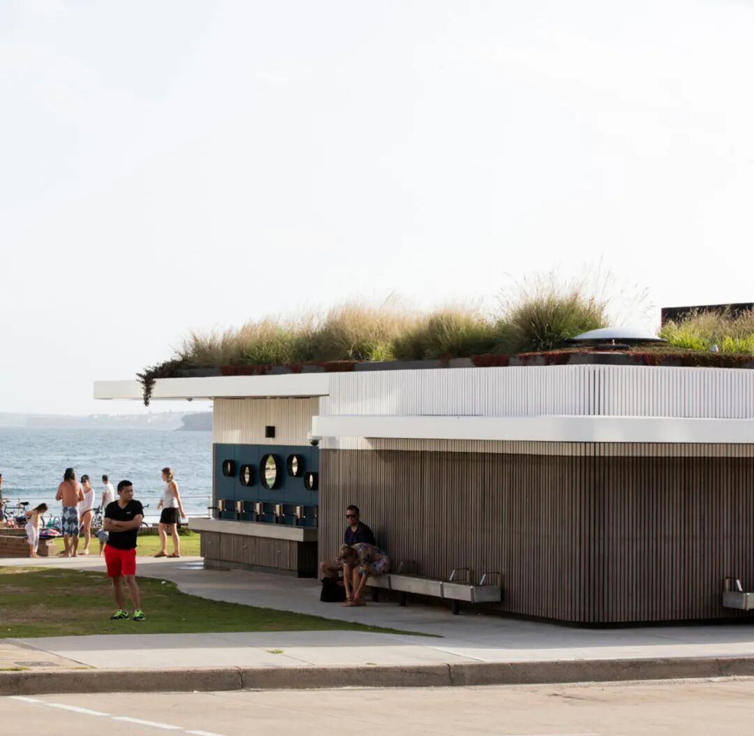 长椅和遮阳篷为 Campbell Parade 巴士站提供了缓解,公共浇铸混凝土洗手盆和室外淋浴将建筑物的舒适性延伸到公共领域。