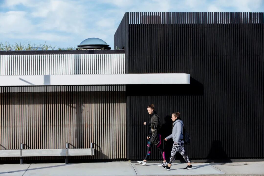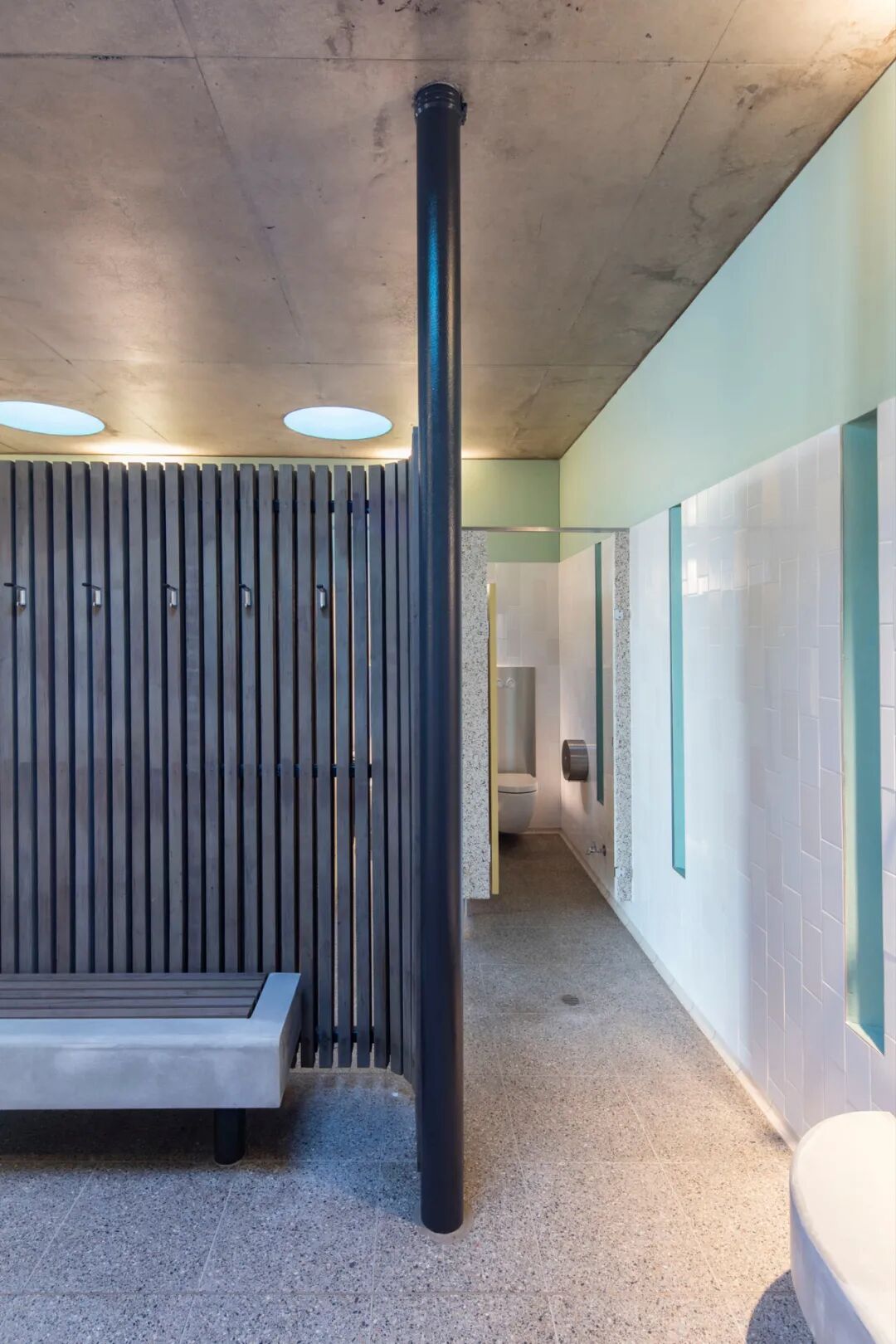 坚固的混凝土结构覆盖着再生硬木,将便利设施建筑和相邻的悉尼水泵站统一成一个有凝聚力的形式。