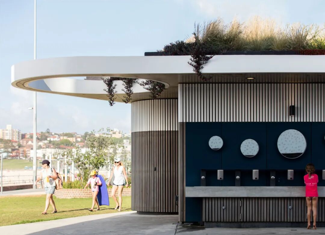 大家可能忽略了一点,其实我们每次出海,海游,冲浪回来,我们清洗不是很方便, 在国内海边的沙滩绝多数是景观沙滩,几乎沙滩建筑比较少,小编今天给大家分享一个海边沙滩建筑,它基本上满足了人们的使用需求,而且细节做的很不错。它来自于澳大利亚新南威尔士州邦迪。