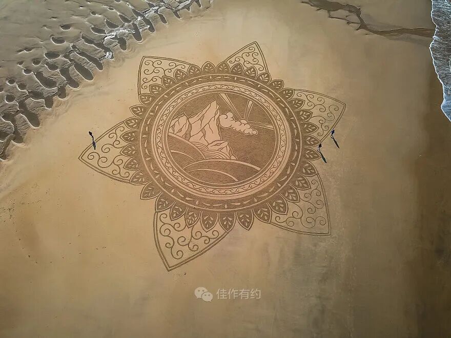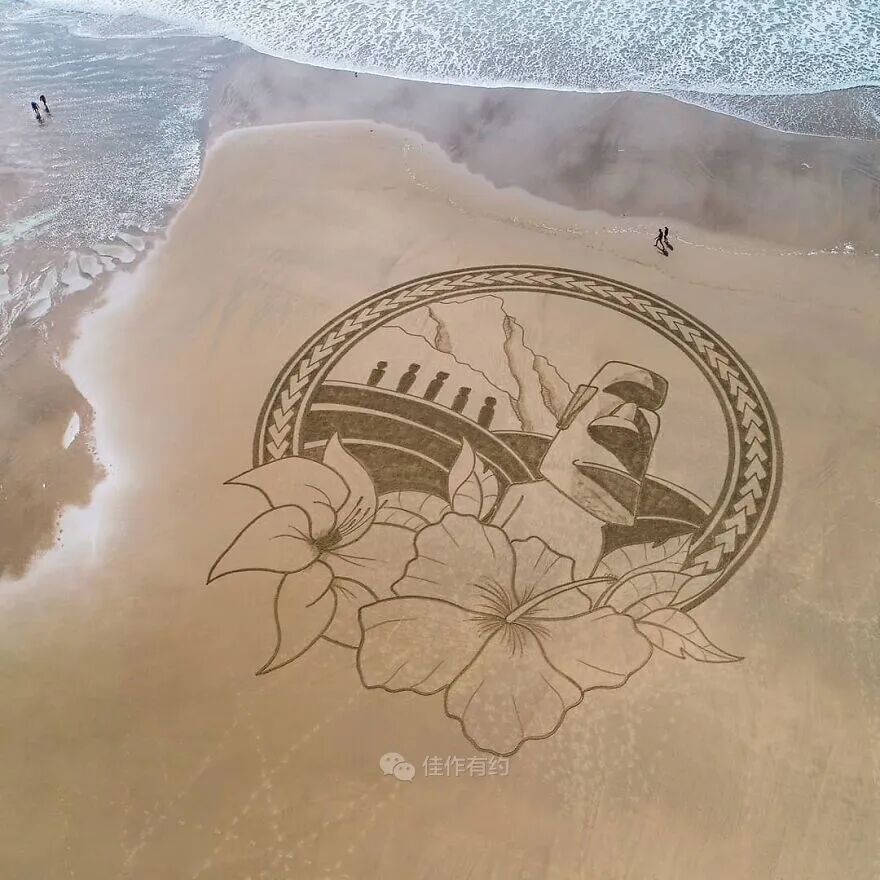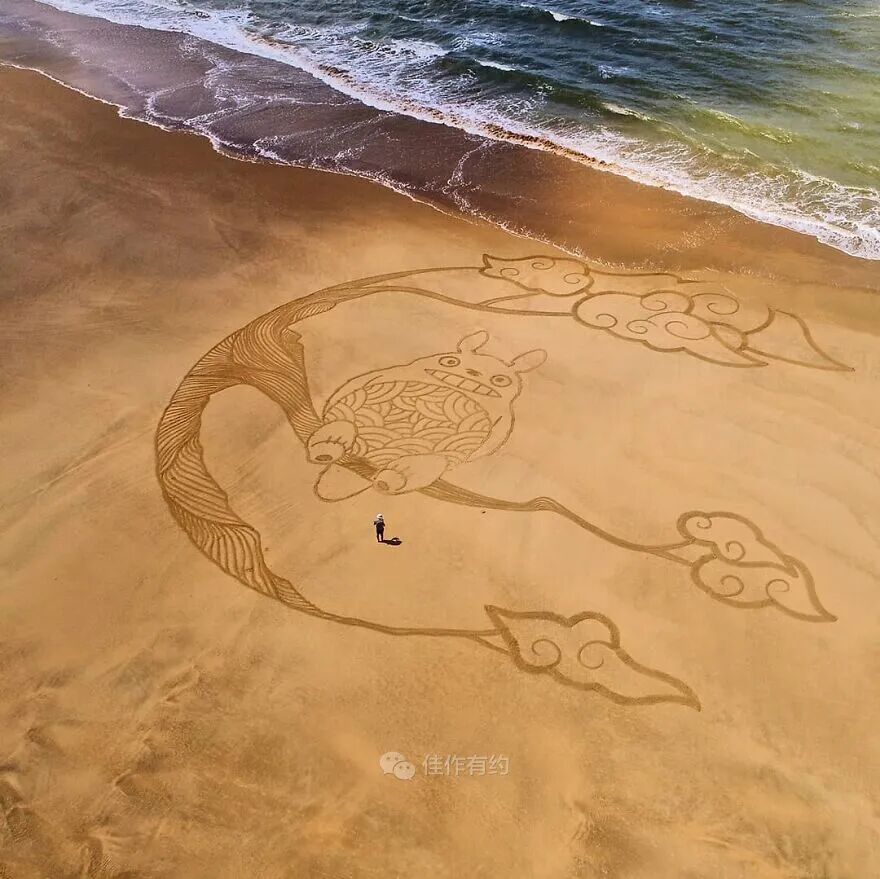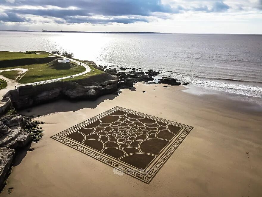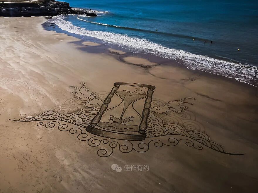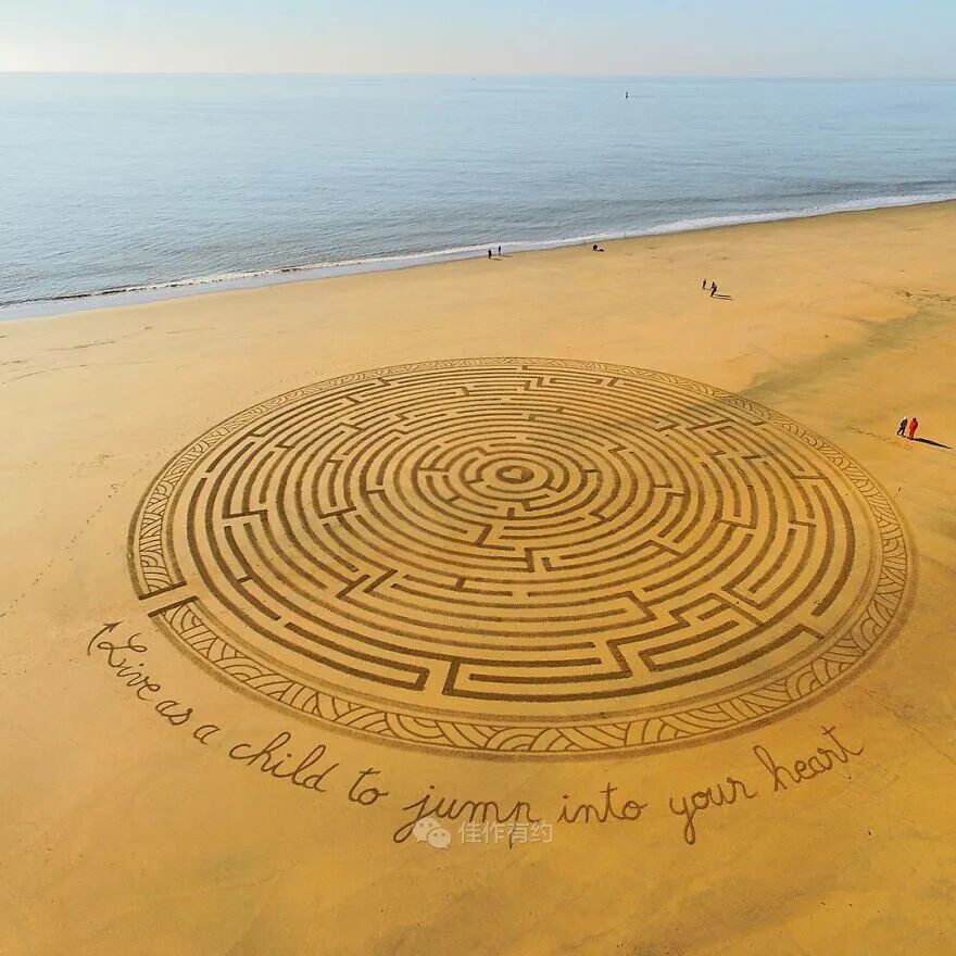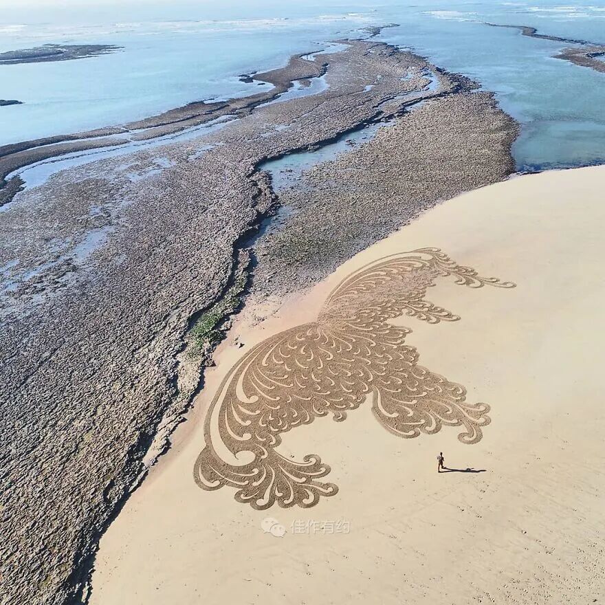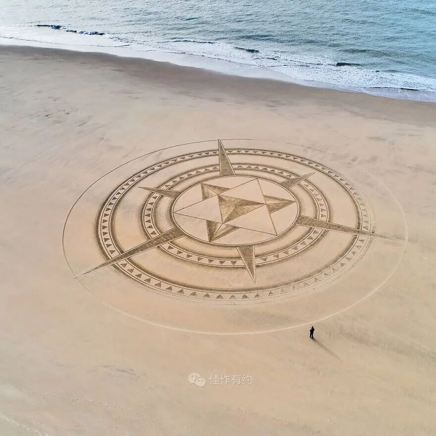 艺术总是无处不在,来自法国的艺术家Jben自2013年以来,一直在位于法国西海岸的鲁瓦扬的海滩上绘画。虽然他的作品只能保存4个小时,但这并影响他的创作,相反这更加激发了他的创作热情。艺术家Jben用无人机拍摄艺术作品,他的作品一般在 30 到 100 米之间,具体取决于复杂性和潮汐。他从来不用草稿,而是灵感来之后即兴创作,多年来在海滩上绘画成了他的全职工作。