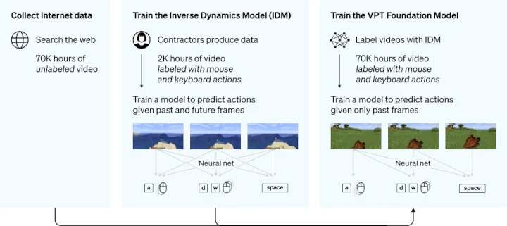 OpenAI是一家专门从事神经网络开发的公司,其下的两个AI在观看了7万小时的YouTube视频后,学会了一起玩《我的世界》。第一个AI学习玩家采取的动作,而第二个AI通过分析用于执行每个动作的按键,为其分配标签来描述相应的动作。