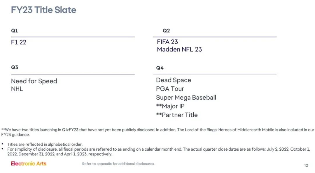 国外记者JeffGrubb找到了EA此前公布的财报信息,上面显示EA将在截止2023年3月31日的第四季度推出5款游戏:《Dead Space》、《EA Sports PGA Tour》、《Super Mega Baseball》、一款主要的IP游戏(星球大战 绝地:幸存者)、一款合作游戏。其中,这个“合作游戏”很可能就是指EA与光荣合作的《Wild Hearts》。