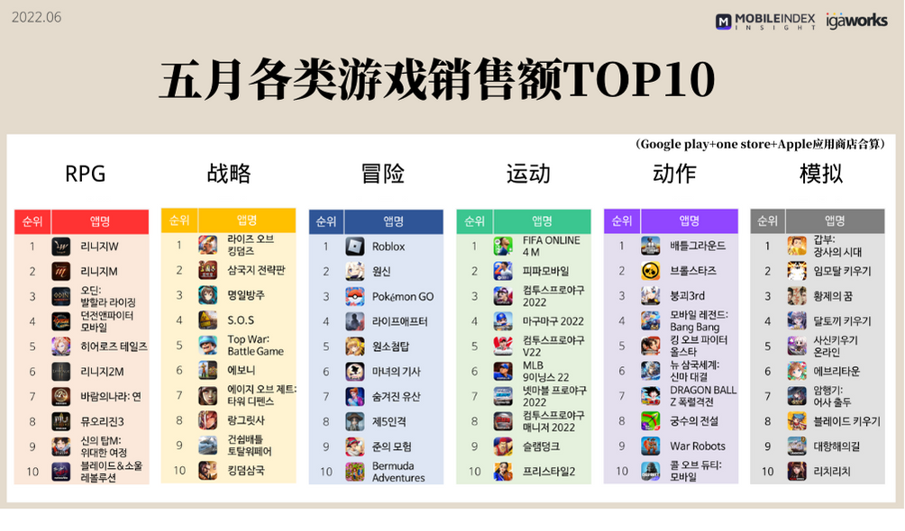 过去一年的时间里,韩国手游市场总共流失了约270万玩家。在2021年6月,韩国手游玩家月活跃用户数约为2560万名,而在2022年5月,这一数字下降了10%,至2290万名。