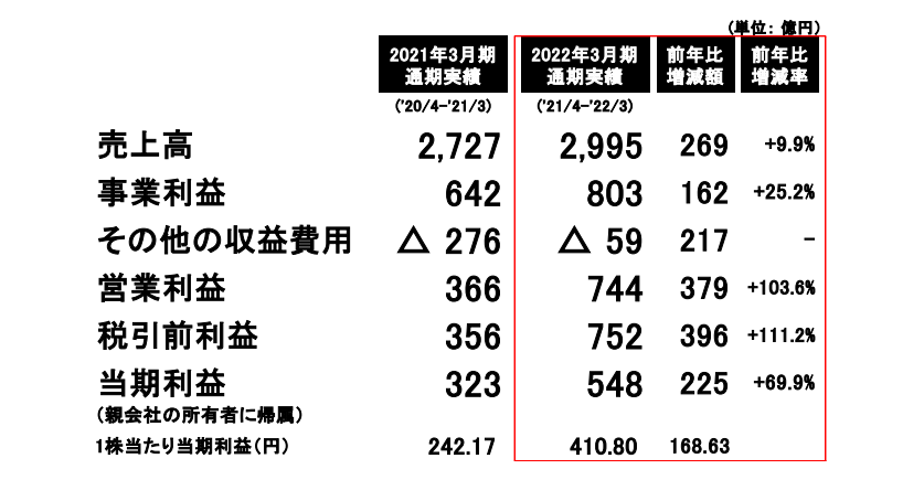 科乐美于近期发布其年报(2021年4月至2022年3月期),数据显示,该司达成: