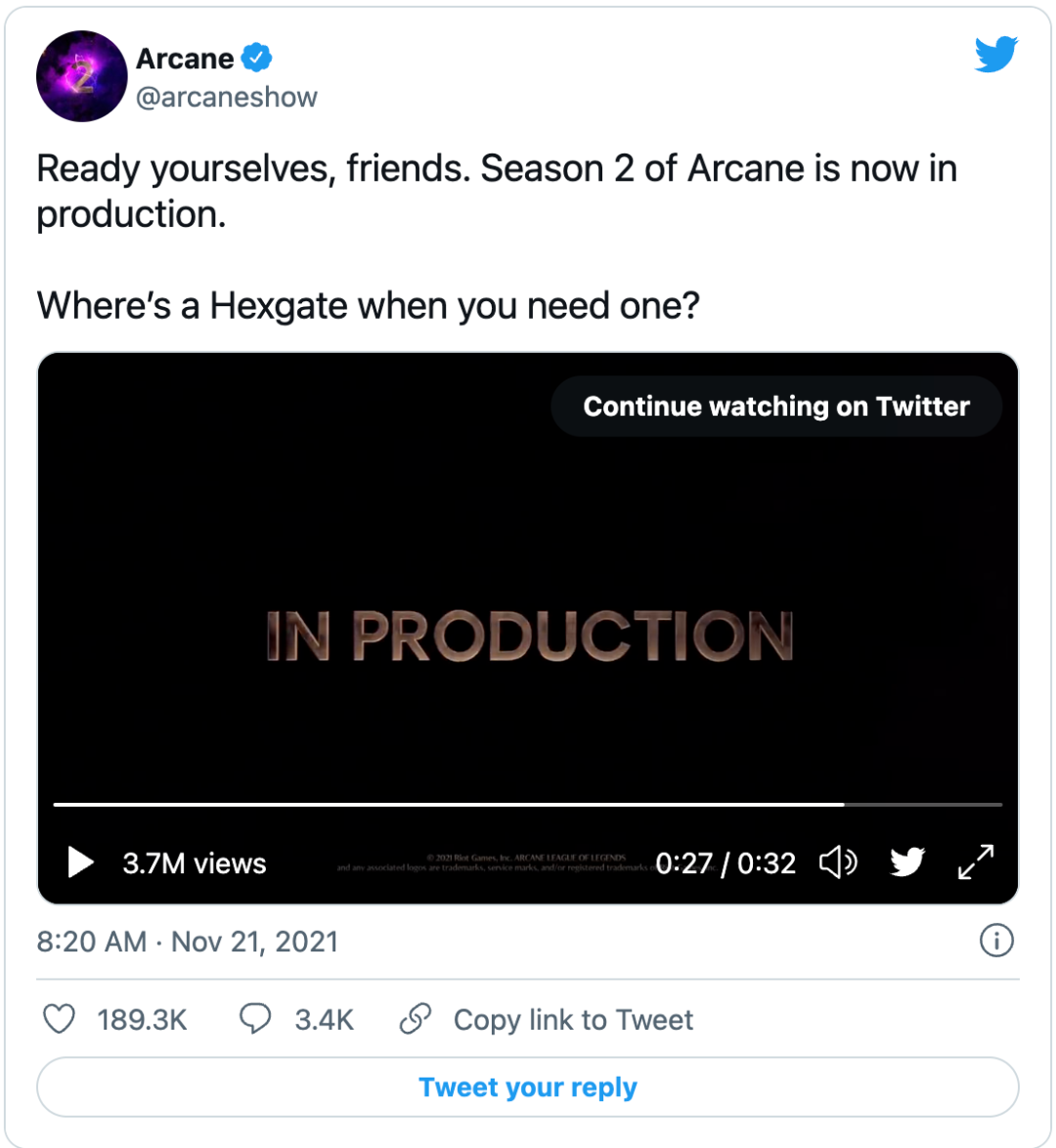 Netflix 和拳头游戏已正式宣布英雄联盟动画系列Arcane第 2 季正在进行中。