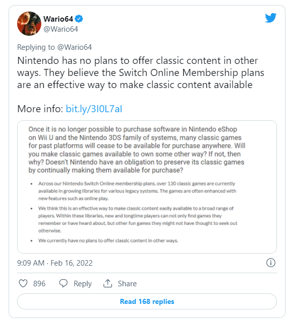 Wii U/3DS eshop的停用将导致eShop上的1799个游戏无法购买或访问,它们包括GBA游戏的虚拟机版及其他独特版本,如3D经典重制版。虽然部分3DS和Wii U游戏可以通过购买实体卡带获得,但毫无疑问eShop的关闭将给供货带来巨大压力,并全面提高游戏价格。