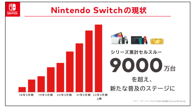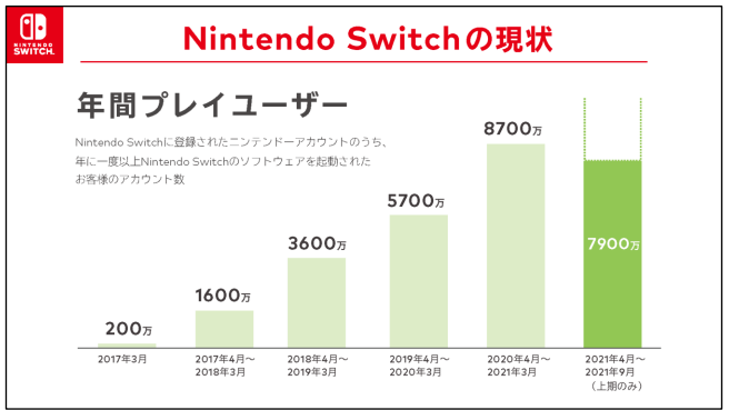 最新文章2023-03-23 【海外】任天堂最新财报——处处都是爆点!次生代游戏机制作确定! 本条新闻由网易雷火UX用户体验中心整理,转载需注明本公众号 任天堂株式会社在11月5日发布了最新的财报,财报对于NS的现状以及今后的发展方针做出了简单的介绍。(注*2022年3月期指的是2021年4月~21年9月期间) NS的主机累计销量超过了9000万台,达到了新的普及高度。任天堂账号超过2.5亿个,结合装机量可以说平均每台机子配套了2-3个账号。同期,2021年4月~2021年9月的登录活跃玩家有7900万人,几乎赶上了往年一年的量,达到了新的高度点。公布出来的活跃玩家群体是以20~35岁的玩家为主的年轻人。 任天堂在财报里首次提出了自己扩展计划:“让Switch从每家一台变成每家复数台;让人手一台变为人手复数台”。 任天堂在财报里也提到了自己的常青树游戏,并确认了《塞尔达传说 旷野之息》续作、《斯普拉遁3》《猎天使魔女3》等作品也会在2022年登场。 财报内,任天堂表示了自己以后做游戏的决心:自己将会持续向所有玩家提供独创的,易于沉浸的游戏体验。在今后,任天堂将会瞄准周边产品、手游、主题公园电影四个方向来发展IP。 最最重要的就是任天堂财报再次确认了次生代游戏机将会在“20XX”年发售!续航能力更好,可以更好的服务于玩家的游戏机在研发了!让我们一起期待! 本文来自微信公众号“网易雷火UX用户体验中心”(ID:LeihuoUX)。大作社经授权转载,该文观点仅代表作者本人,大作社平台仅提供信息存储空间服务。 TAGS: 任天堂会游戏玩家财报 相关文章英赫日报 | 李宁 × 空…米兰时装周的异星来客,用结…米兰“MoLo”移动与物流…西班牙艺术家 Juan d…把小鸟画成美少女,她弃医从…这些鸡蛋包装不只是有趣,设…国产文具又炸了!晨光再造“…七点资讯 |《更衣人偶坠入…AlphaDraw筑绘通「…秦始皇的黑,是你不懂的黑。