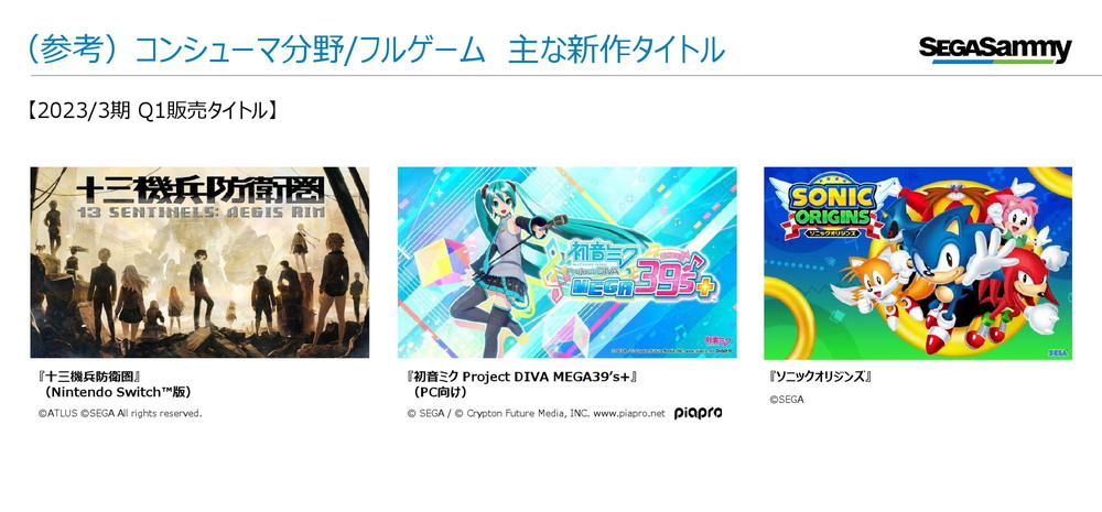 第一季度内,家用游戏机向的游戏营收为98亿日元,同比减少10.9%;其中,包含《十三机兵防卫圈》、《索尼克:起源》等在内的新发售作品的销售收入同比下降30%,共达成21亿元,其余收入则来自老游戏。而免费游戏的销售收入则为156亿日元,同比增长25.8%,为2019年以来的同期最好水平。