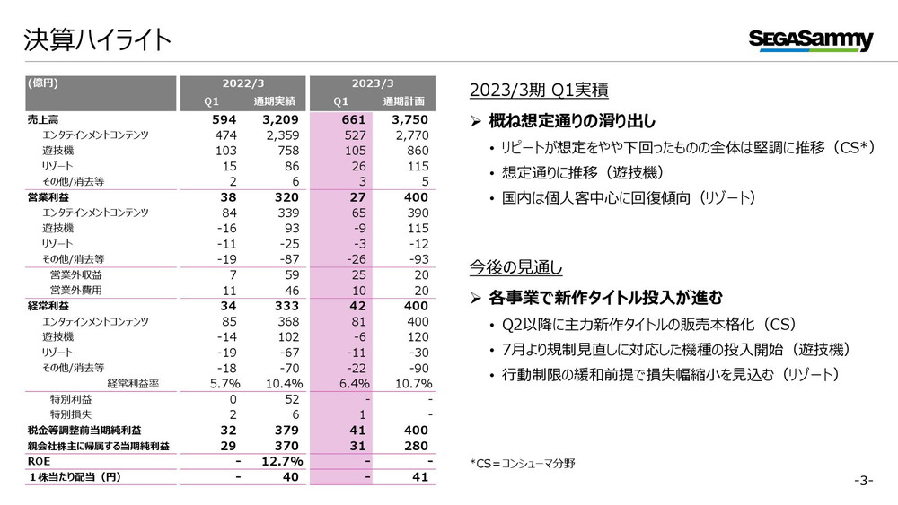 近日,世嘉发布其2022-2023财年第一季度财报(2022年4月~2022年6月期),数据显示,该司达成: