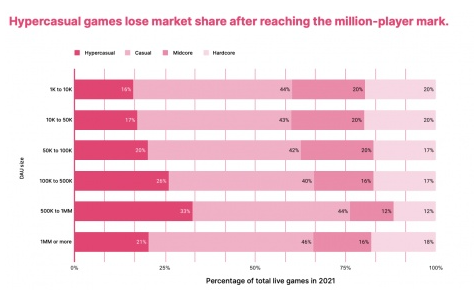 尽管该类型快速增长,Unity 认为超休闲游戏的受众规模存在“上限”,并且超休闲游戏在达到百万玩家大关后会失去市场份额。Unity 建议,要让游戏保持更大、更长期的受众,它需要“更深入”的游戏玩法。