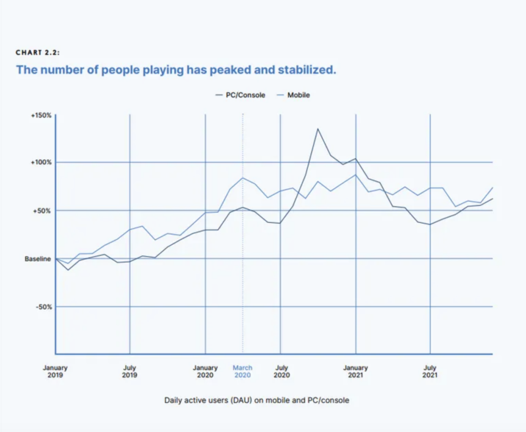 在接下来的几个月里,这些数据对于审查不同游戏公司的财务报告非常有用。一些公司的收入仍在疫情驱动的浪潮中处于高点,另一些看到的则是下降,并将其称为“后疫情时期的下降”。但总体上,各种形式和规模的开发者的业绩都实现了增长。