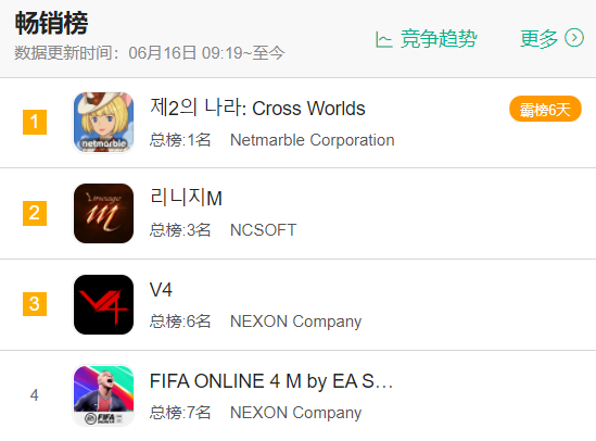 重要的是,它的商业成绩也出色:公测首日登顶日韩港澳台5地App Store免费榜,这在接近固化的韩国市场可谓难上加难。