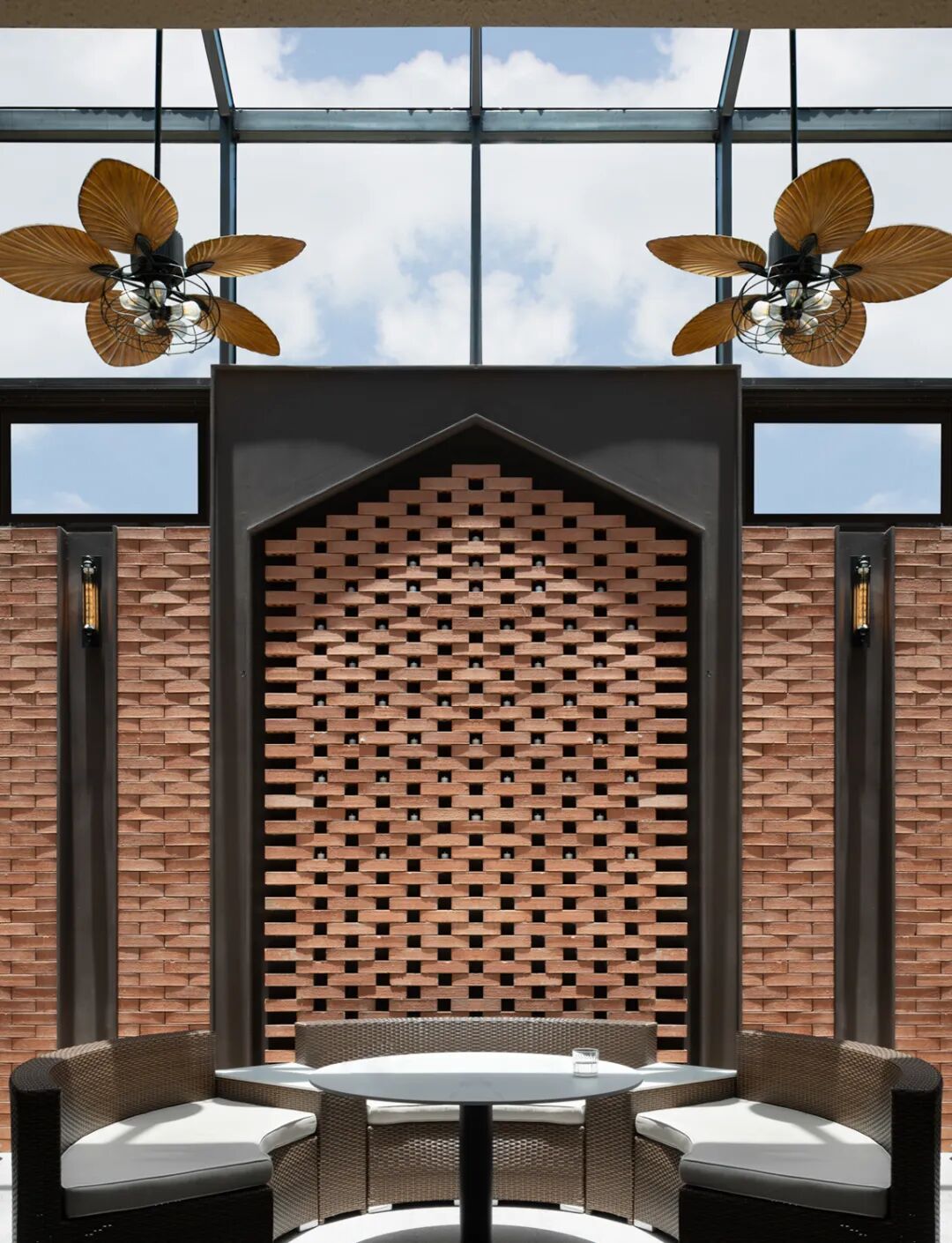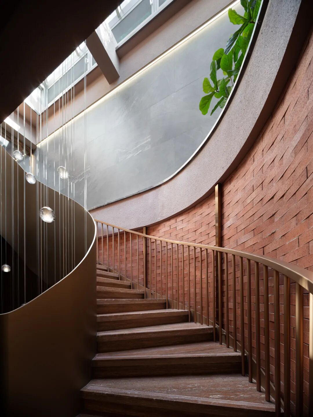 沿着云梯踱步前行,被朱砂陶砖包裹,褪去时代的浮躁,内心变得平和。探出墙头的植境,随着二十四个节气更换。恰逢夏至,至者极也,亦是“阳”“阴”转折点。光线的流动恰似生命复始,留下是最质朴的本真。