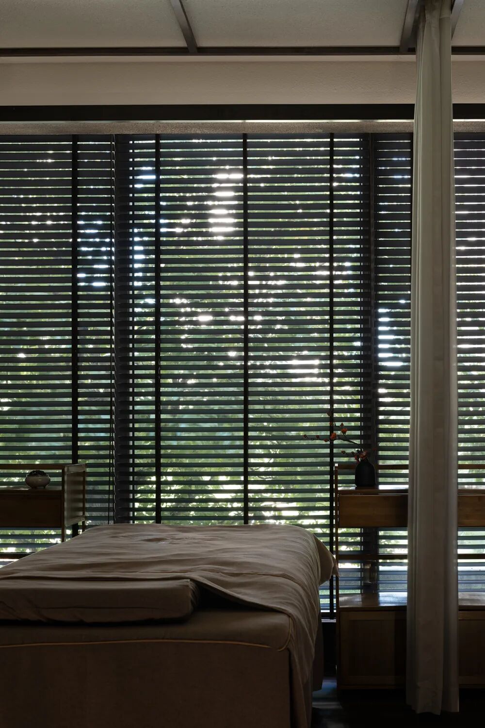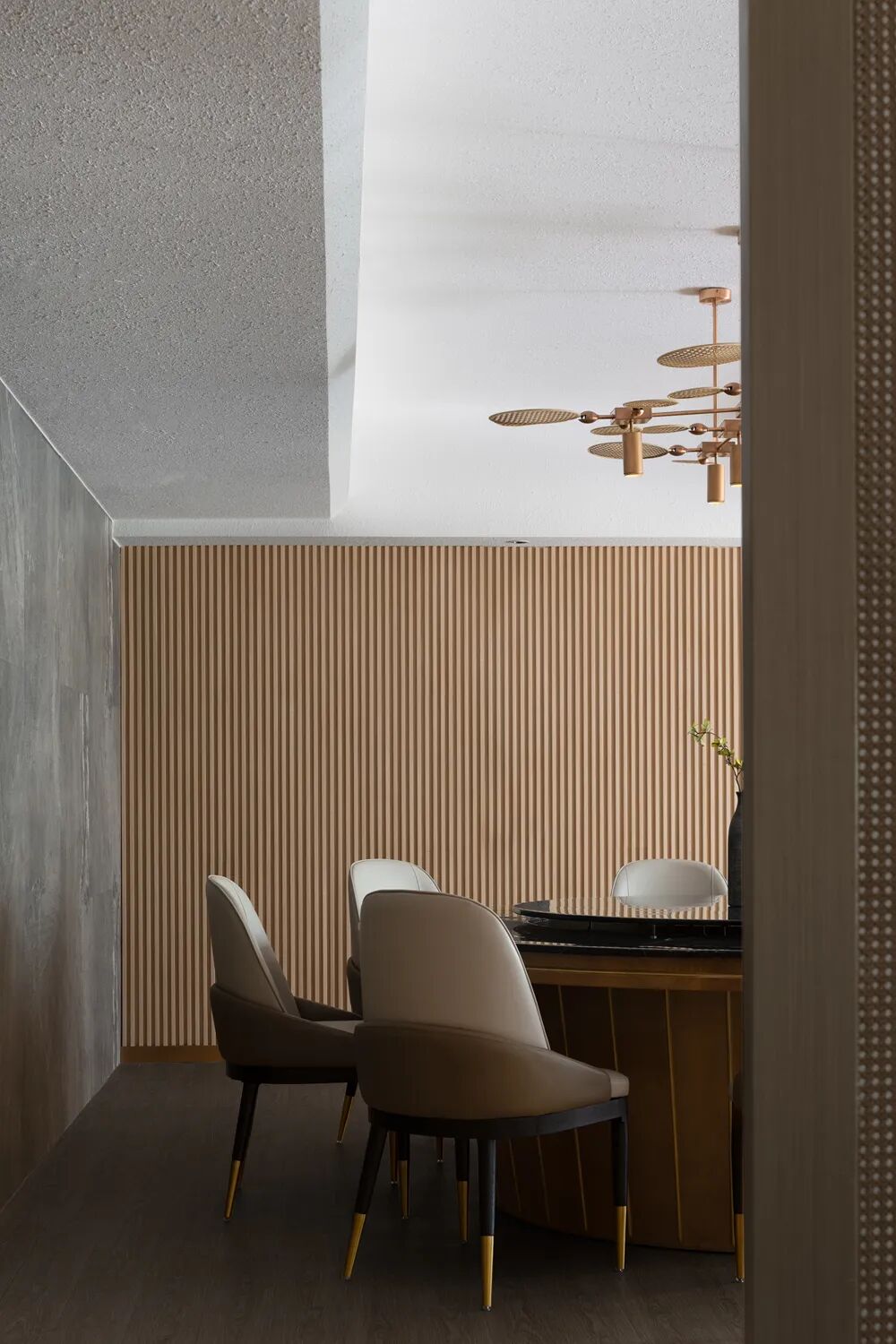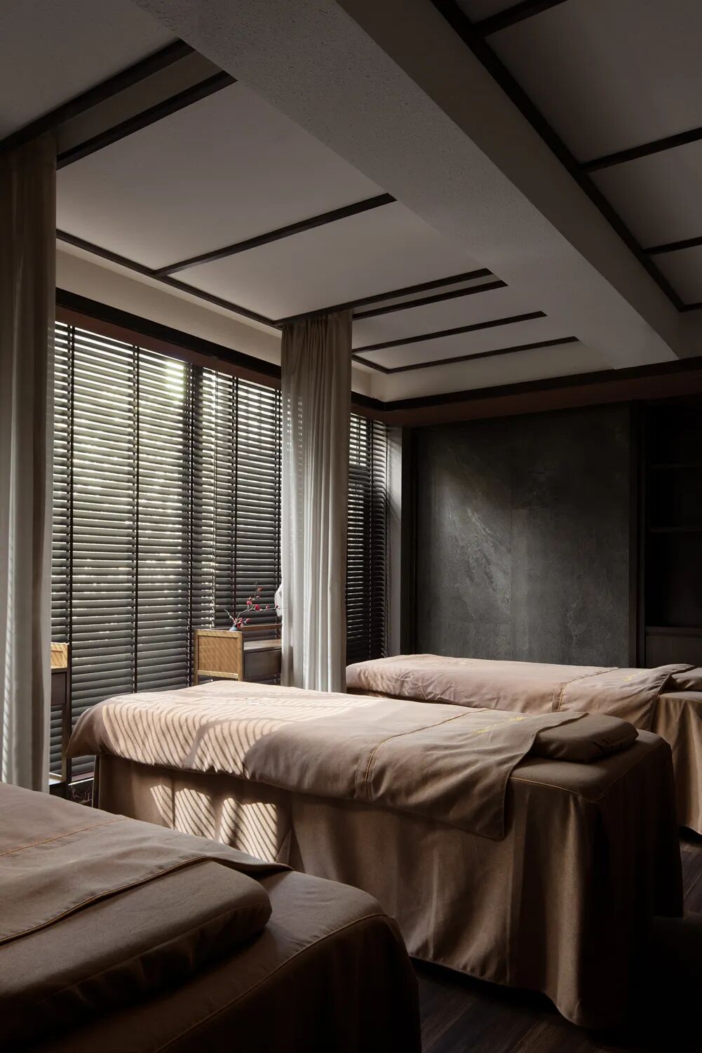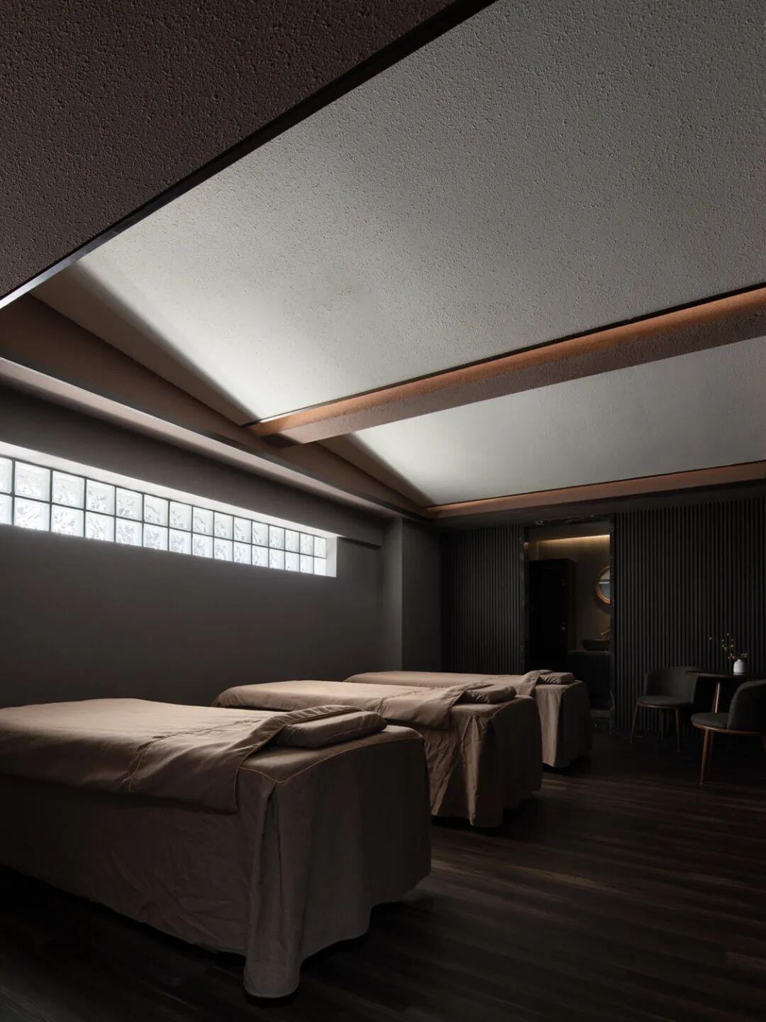 万物皆有罅隙,那是光进来的地方。这道光变幻成另外一种温润的形态,视觉被“深色”包裹,感官处于微松弛的状态。温润的微光又恰到好处浸润着空间,这使得“深色”褪去了视觉的既定习惯,包容的接纳所有疲惫的身躯。