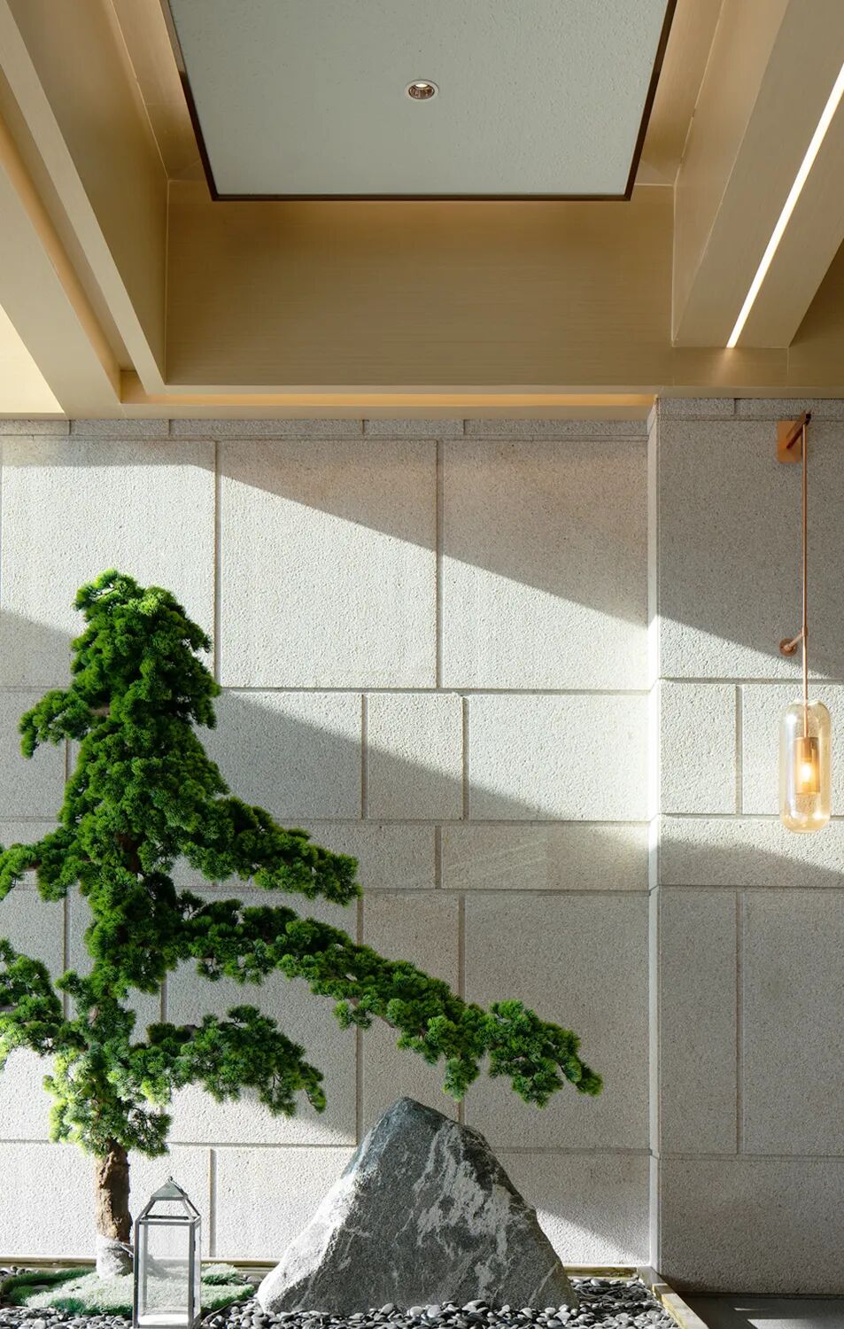 步入漫道,唯有辅光与门扇透出的余光。宁静氛围的营造不由偷得浮生半日闲。漫道两侧三两树影,亟待推门步入自然。龛中小物,唯诧唯寂,指引深径。