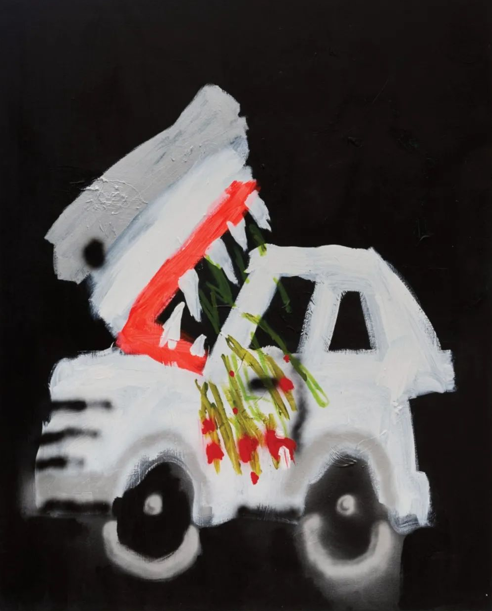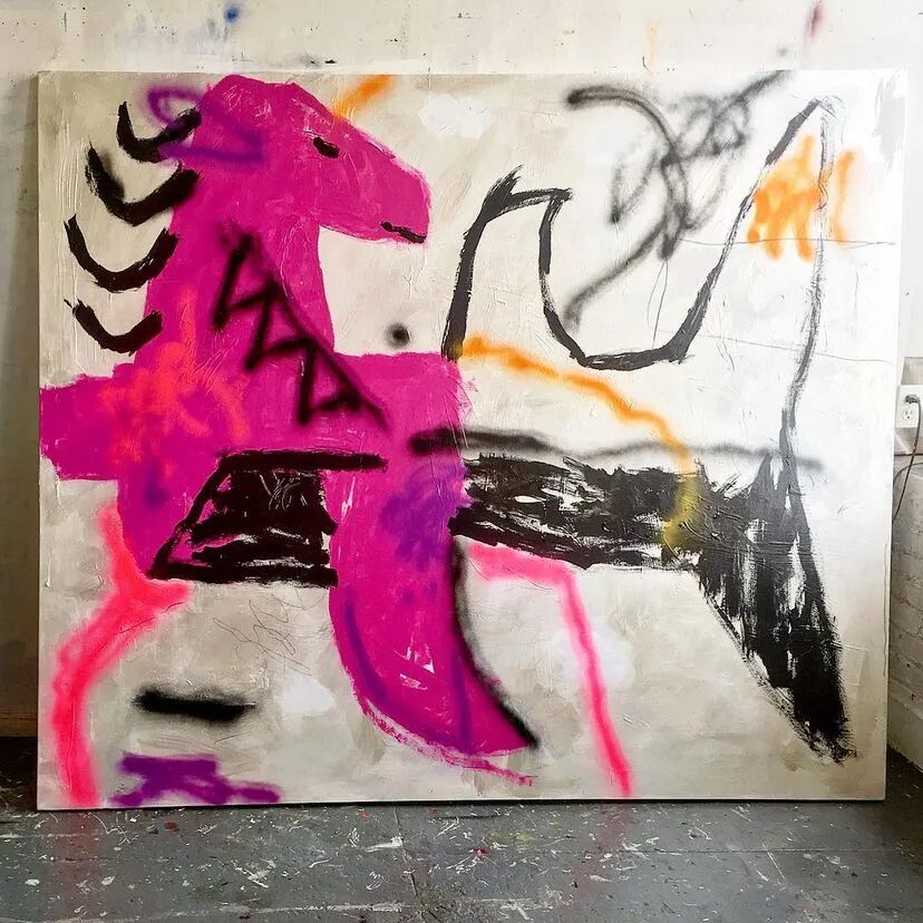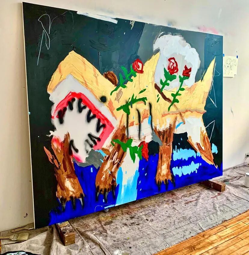 Robert Nava致力于创造响应时代的“新神话”,通过喷漆、丙烯颜料和油性彩铅组成的充满原始活力混合渲染。