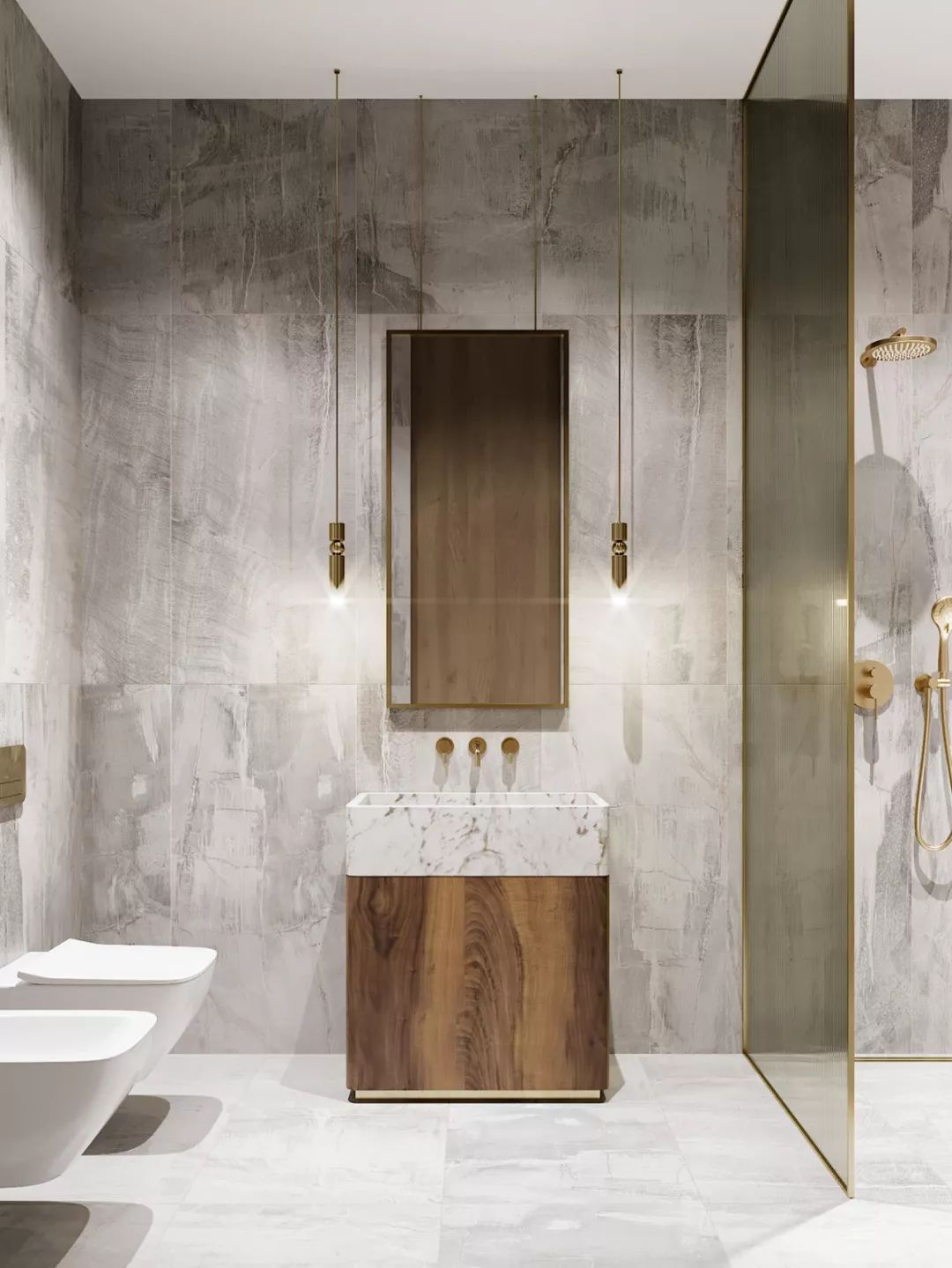 如果想要保持隐私性,那我推荐你使用磨砂、有色玻璃等作为隔断,还有更加时尚的玻璃砖作为隔断也可以。