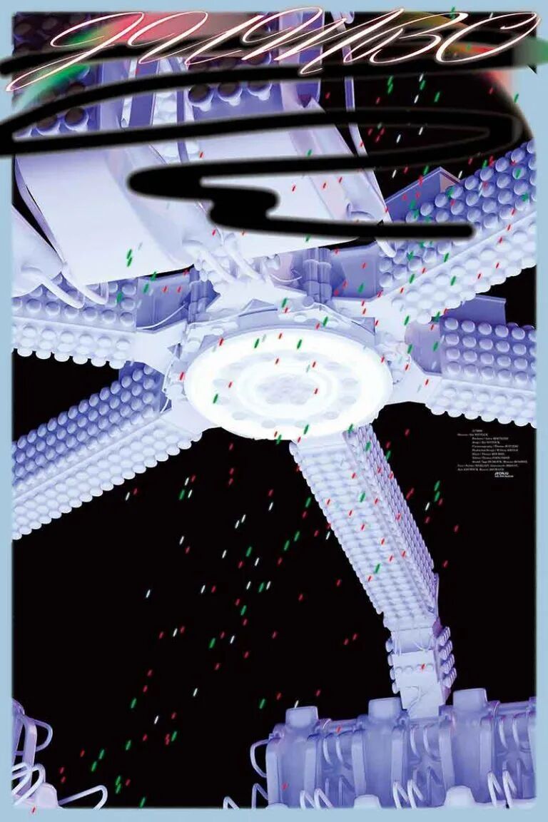 画面中充斥着大量的未来感材质,例如液态金属、镭射、玻璃、塑料制品,具有浓郁的酸性设计风格。