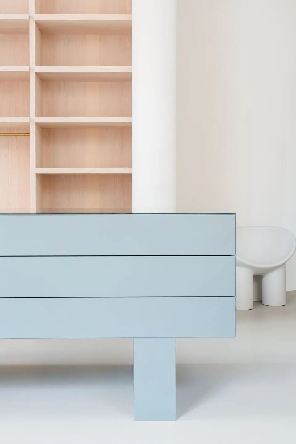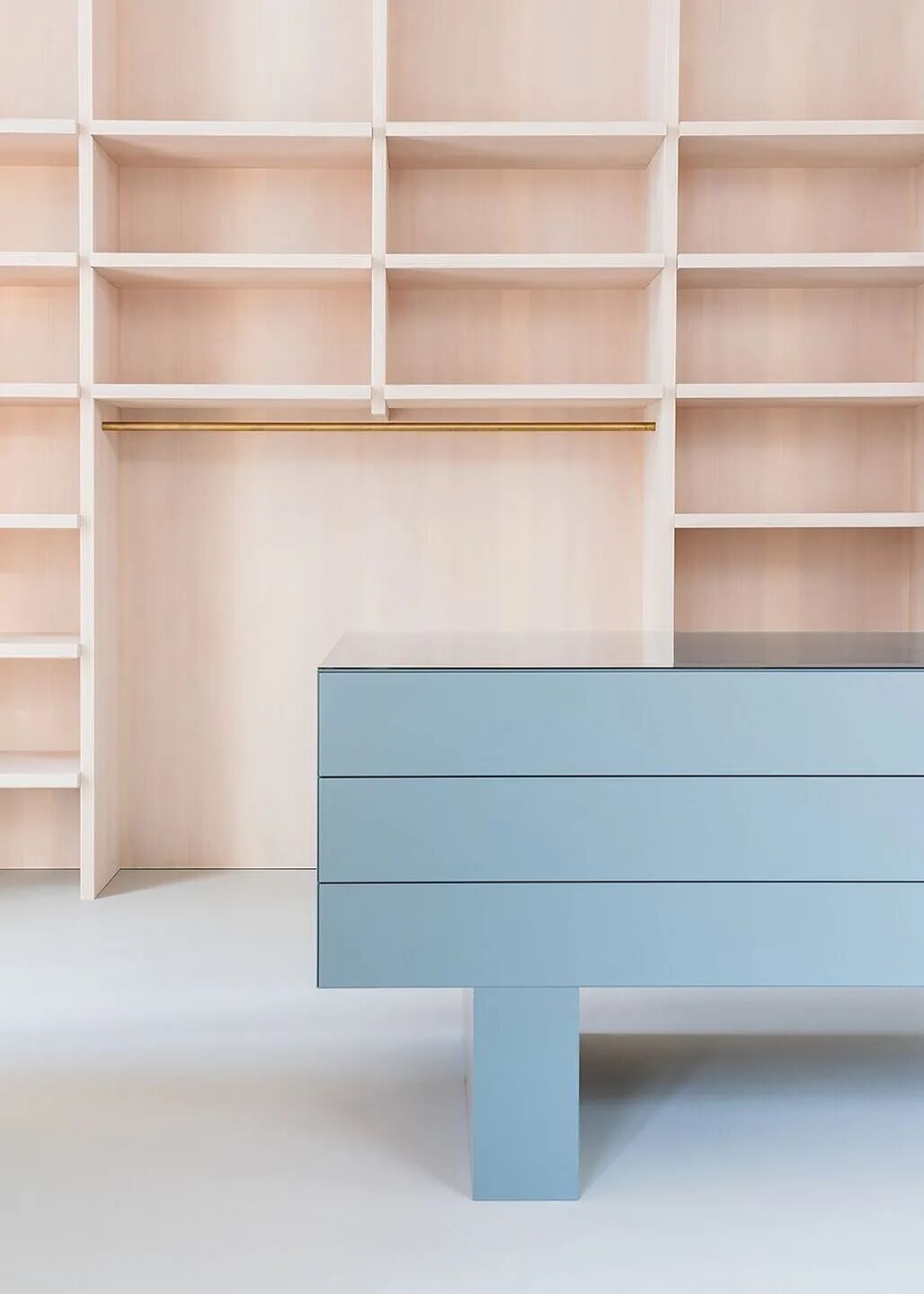 作品集2023-04-10 汉堡 HEYDORN 羊绒品牌极简空间设计 | BATEK ARCHITEKTEN BATEK ARCHITEKTEN在汉堡为家族经营的羊绒品牌HEYDORN设计了一家新的极简主义商店,其特色在于色彩和材料的迷人运用。HEYDORN代表可持续和高品质的羊绒产品,采用传统方法手工制作,非常注重细节。随着HEYDORN新店的设计,这家总部位于柏林的建筑公司,以其在私营和公共部门的功能性、严谨思考和前瞻性空间概念而闻名,再次展示了其对零售设计主题的敏感态度。 汉堡的HEYDORN商店位于汉堡诺伊施塔特区一栋历史悠久的街角建筑的一楼。这家商店有三个面向街道的巨大的圆形拱形展示窗,自然光充整个空间,占地面积不到60平方米。在设计理念上,BATEK ARCHITEKTEN以汉萨羊绒品牌的企业身份为基础,以北欧生活态度和自然配色方案为灵感,设计了一家低调优雅的商店,同时注重羊绒材质的柔软触感。通过其形式上的限制,BATEK ARCHITEKTEN的设计为高质量的产品提供了一个简化的功能背景。 色彩概念是基于一个中性的调色板,由精致的浅色调组成,这些色调被特意放置的色彩强调所抵消。这家建筑公司设计了暖灰色定制墙架和柔和的鸽蓝色独立元素。明亮的黄色元素在房间中营造出活泼而现代的氛围。家具的表面因其自然的古铜色和触感而迷人。例如,道格拉斯冷杉(Douglas fir)的白色涂油木质表面及其自然独特的纹理与羊绒制品的自然结构和谐融合,并辅以哑光手工涂漆MDF表面和黄铜元素的自然光泽。 凭借开放式的室内建筑设计,BATEK ARCHITEKTEN完美展示了HEYDORN的羊绒产品。由白油道格拉斯冷杉制成的落地式货架、灰色涂漆MDF货架和黄铜衣架为该品牌的羊绒产品提供了一个正式的约束舞台。在空间的中心,BATEK ARCHITECT放置了定制的独立式家具,在巧妙展示产品的同时为产品提供额外的存储空间。 HEYDORN HAMBURG项目是一个引人注目的例子,说明BATEK ARCHITEKTEN如何通过正式的约束和他们对HEYDORON品牌经典精髓的微妙感受,创造了一个永恒的零售店。 平面布置图 项目信息 项目地点:德国・汉堡 项目设计:BATEK ARCHITEKTEN 项目面积:约60平方米 编译/排版:微信公众号 T5OP设计网 完成时间:2022年 所用材料: 道格拉斯木材,MDF涂漆,天然黄铜 本文来自微信公众号“T5OP设计网”(ID:T5opCom)。大作社经授权转载,该文观点仅代表作者本人,大作社平台仅提供信息存储空间服务。 TAGS: 展示空间羊绒设计 相关文章Kleoniki Andr…这是大王Day.281获奖作品《2020最佳图书…精选头像|搞怪来袭!安东尼奥·布埃诺 作品配色清新梦幻的场景插画,充…美国Jennifer Mc…【小鹏设计】设计小改/动力…【首发】地点空间丨打破空间…谢商家不坑之恩!只骗有钱人…
