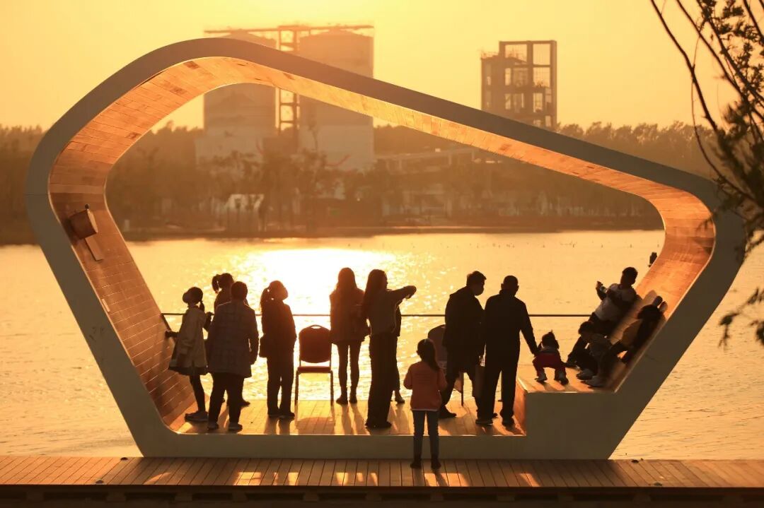如今,“清渠如许”每天净化量能够达到5千吨,为园区内湖水供给提供充足保障。“清渠如许”引出了城市活水,呈现了融入自然、回归山林的景观,成为生态循环助推绿色发展的佳作。