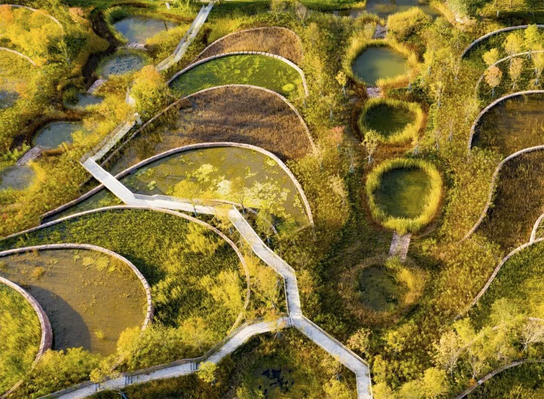 “清渠如许”是河北省第四届(邯郸)园博会精心打造的中水生态净化示范区,属于园博园湿地保育区。谁能想到,脚下的这片美景,之前是工业矿渣和建筑垃圾堆叠而成的“小山”,是当时环境问题最为严重的区域。