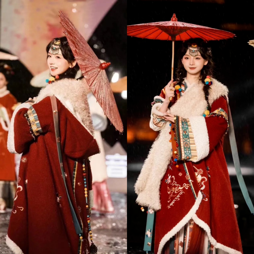 身着一袭藏族风红色唐袍