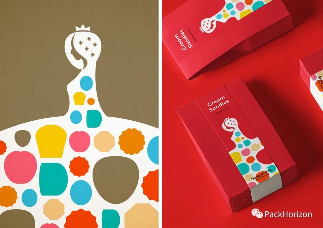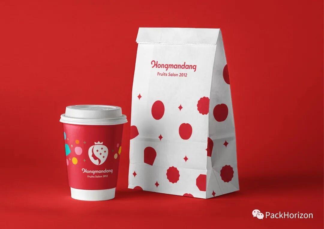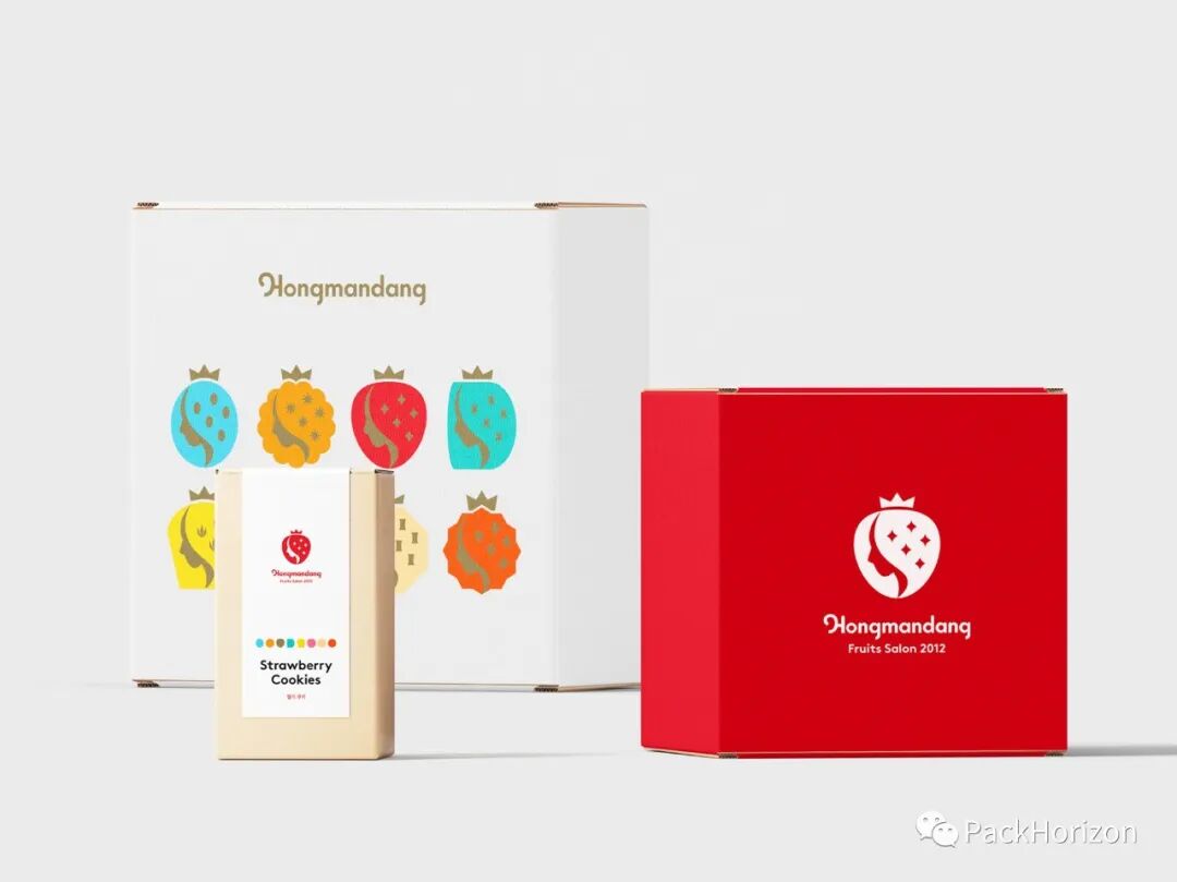 以草莓为主角,在图形中。草莓和女王的女性轮廓被用来建立Hongmandang等同于草莓女王的关系,从而使该品牌能够被视为具有优质的形象。各种各样的水果被用作不同形状和颜色的符号,以创造一个图案来描绘品牌的体验,即给人以美好的味道和快乐。