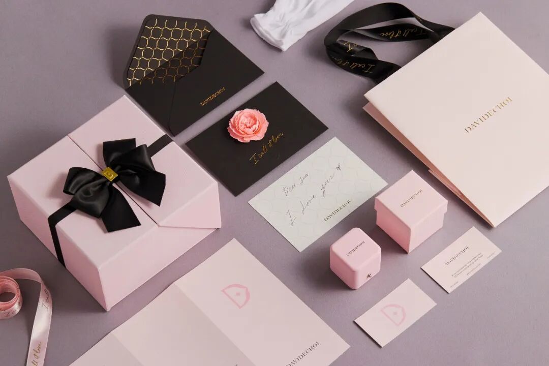 YNL Design负责Davide Choi 的设计发展战略、印刷监督和珠宝包装的管理。通过重新诠释钻石(最坚固的宝石)和牡丹(Davide Choi的标志性花卉,在花语中意为 "羞涩"),将力量和精致视觉化。通过开发代表钻石和牡丹的D符号和图形图案,建立了一个精致的视觉系统。使用了现有的成熟和现代的黑色和类似于可爱的牡丹花的粉红色来表达强大的美。Davide Choi 的品牌标识和礼品包装将为客户提供优质、特别的礼品体验。