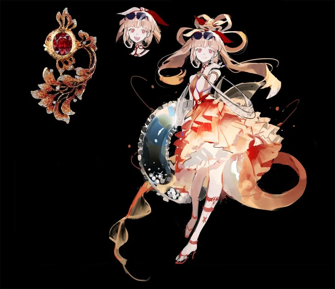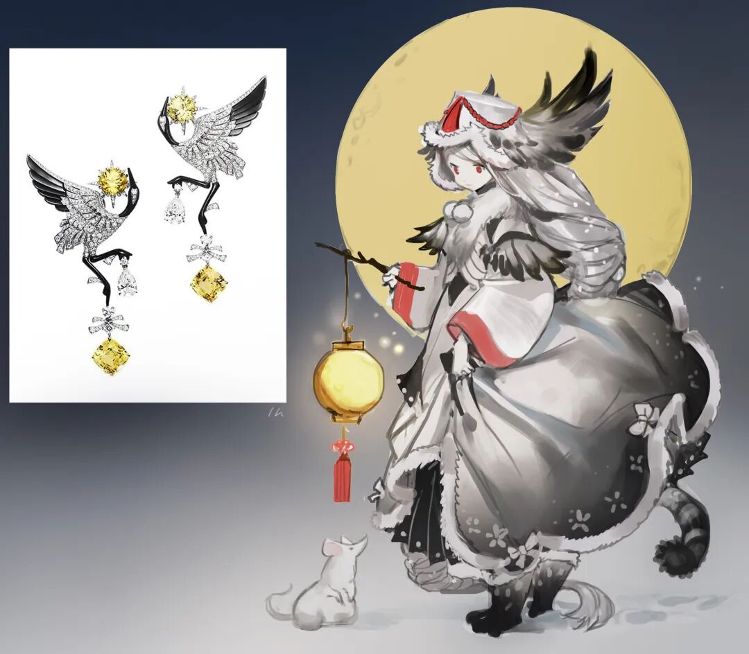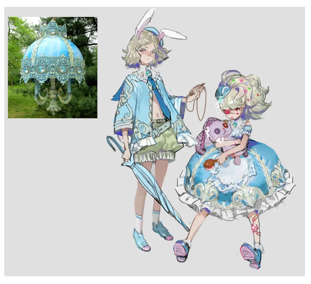 拟人角色的色彩都是从参考物品中提取,但对于色彩搭配却很有创意,亮眼吸睛却又十分和谐,整体精巧华丽别具一格。她在创作时并不刻意追求完成度,而是通过这种方式锻炼自己的设计和配色能力。