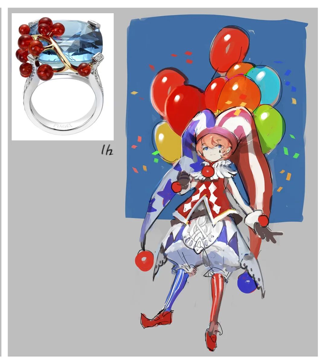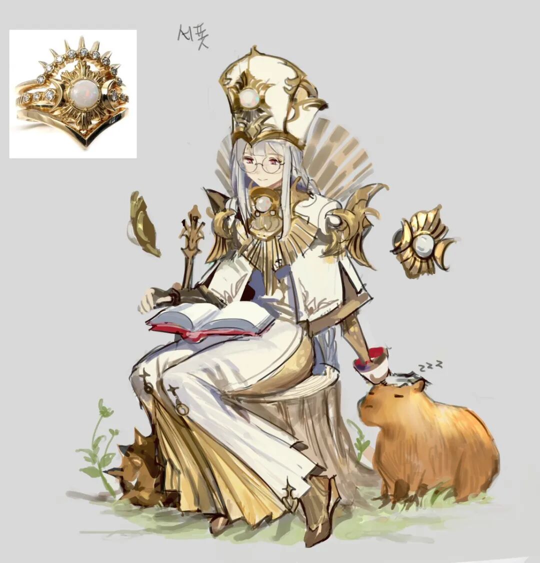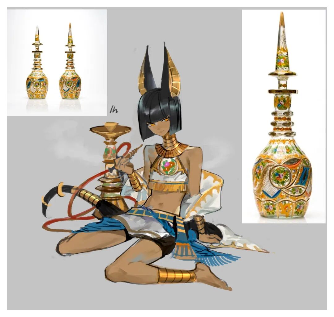 拟人角色的色彩都是从参考物品中提取,但对于色彩搭配却很有创意,亮眼吸睛却又十分和谐,整体精巧华丽别具一格。她在创作时并不刻意追求完成度,而是通过这种方式锻炼自己的设计和配色能力。