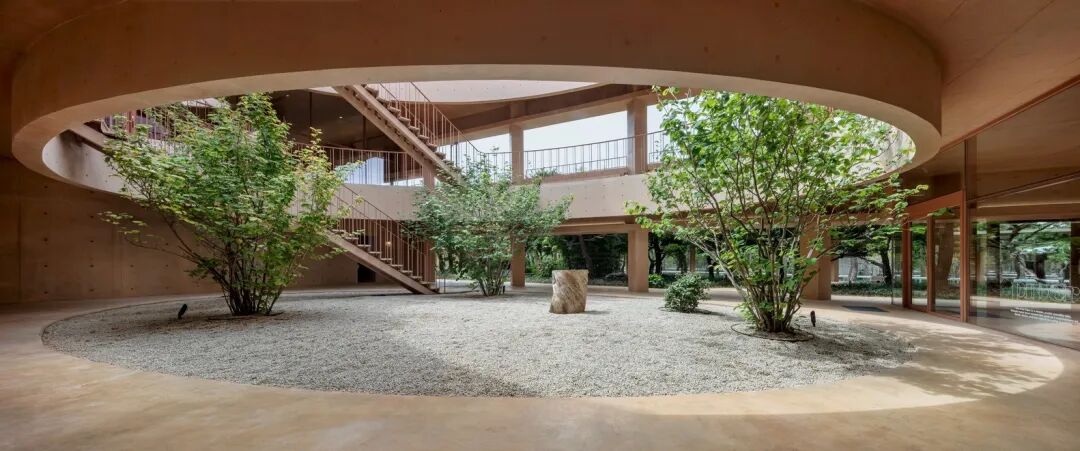 进入狭窄的入口,通过浅粉色裸露的混凝土墙,一些树一起进入视野:两棵现有的形状和品种良好的柿子树和一棵新种植的金雨树,黄色的花超过周边的墙。这一场景是衡量MRNW计划理念的重要线索。MRNW开始于后辈们对于平面和剖面的精心干预,在他们的父亲一代培育的密集和古老的花园。建筑物可以作为树木的背景,也可以通过视觉控制作为框架。此外,在裸露的混凝土墙的阴影下,它成为一条可以看到花园的路线,也成为一个进入树荫下的平台。MRNW被划分为五个区域,其中停车场、咖啡馆、花园、庭院、古色古香的老花园和松林依次重叠。室内空间以与室外区域相交的方式放置,实现了几种组合的视觉关系。来到这里的游客会有不同的感受。当人们绕过入口坡道,走向主入口时,他们会遇到一系列多彩的场景。