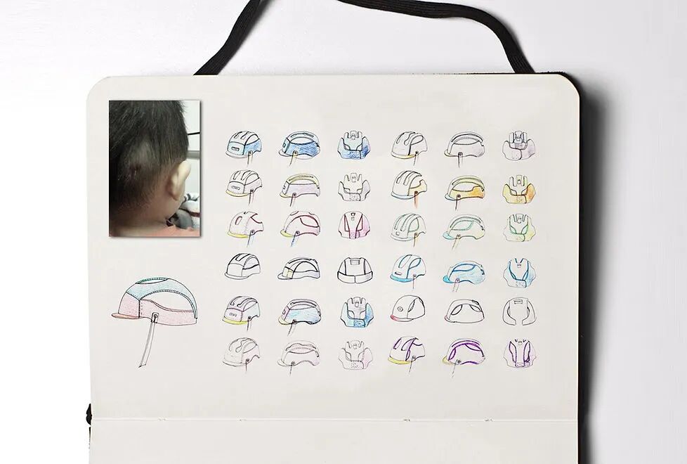 这是一款婴儿头部保护装置,原型是根据6-12个月的平均婴儿的头部尺寸制作的,并且在佩戴时具有可爱的设计。下巴和头部保护装置使用磁扣的方式可以分开,便于清洁。此外,它使用了透气的功能性材料,让孩子始终保持凉爽干燥。