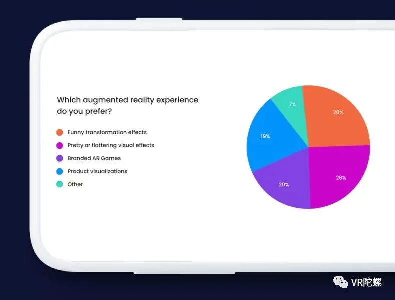 有趣且讨人喜欢的滤镜效果、AR游戏和AR产品可视化引起了消费者的共鸣。消费者最常遇到的体验是产品可视化,占39%。AR产品可视化也加速了消费者的购买过程,59%的消费者表示,他们会更有可能购买他们通过AR看到的产品。