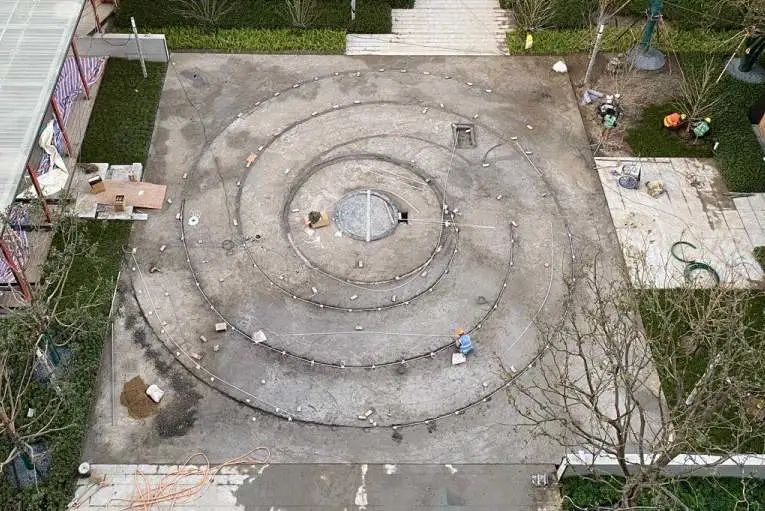 螺旋水景的石材与水磨石(研究、施工与打样过程)
