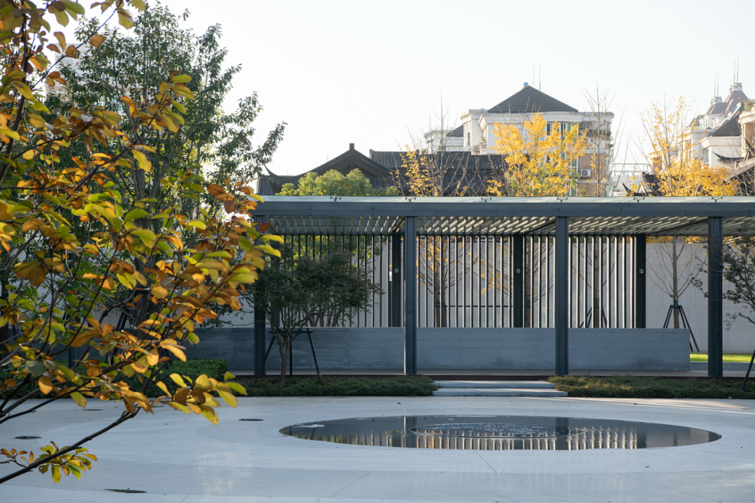 杭州市的消防规范要求在几番调整后格外严格。消防登高面、消防扑救面与建筑之间的植物限高,大面积的场地硬化,让空间本身没了变化的可能。在现有的规划框架下,景观空间组织着力于廊下灰空间与户外空间过渡中因为人的活动行为的多样性而产生的层次变化、植物配置——如北部两个条形场地,除了在上面做符合消防场地高差要求的微弱变化外(俯视呈月晕、象征银河系的儿童戏水),在场地之间设计了可以让消防车通行的月圆变化的装置,这层“屏风”(veil),让两个旷敞的空间之间隔而不断。